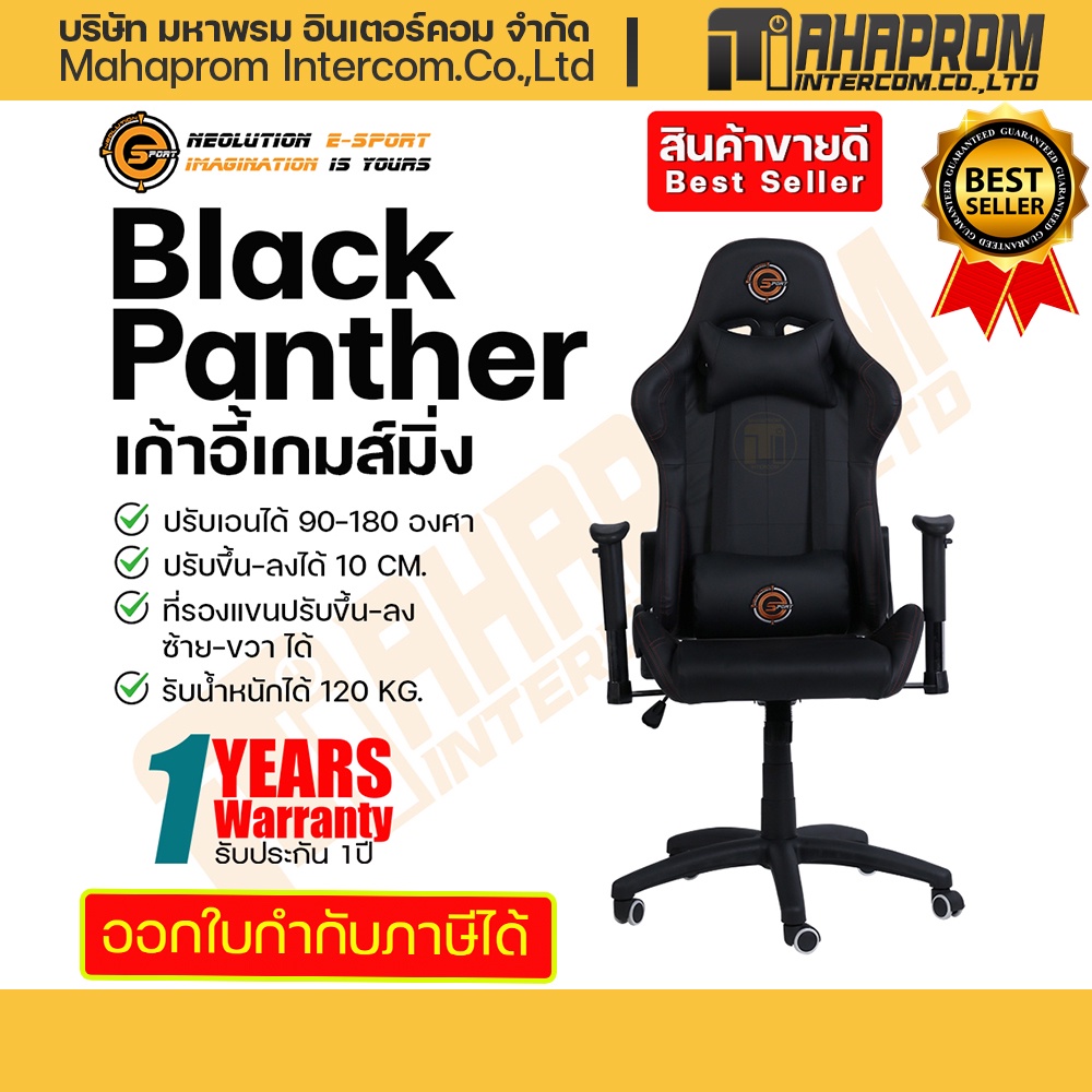 Neolution E-sport Gaming เก้าอี้เล่นเกม รุ่น Black Panther สีดำ ของแท้ ประกันช่วงล่างจากศููนย์ 1ปี.