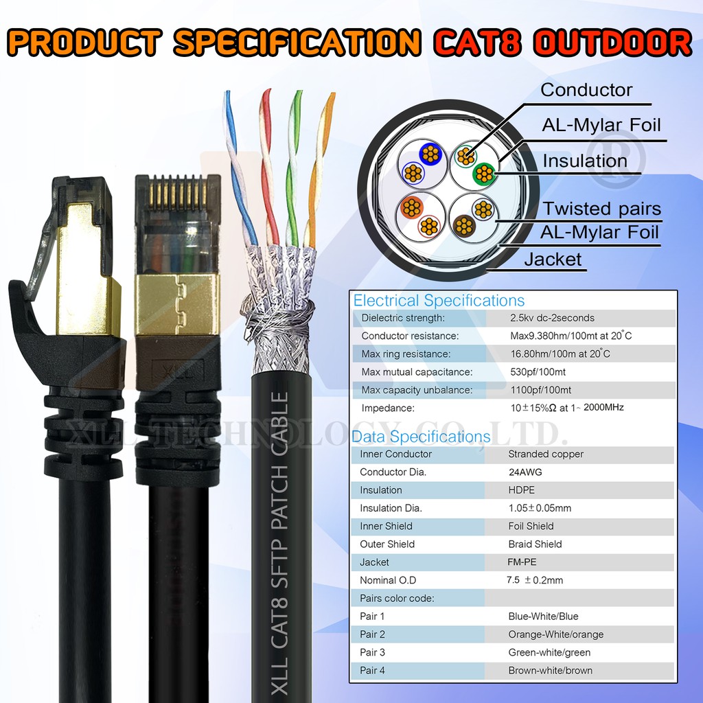 XLL สายแลนสำเร็จรูป CAT8 (SFTP) Outdoor ความยาว 15 เมตร ถึง 50 เมตร.