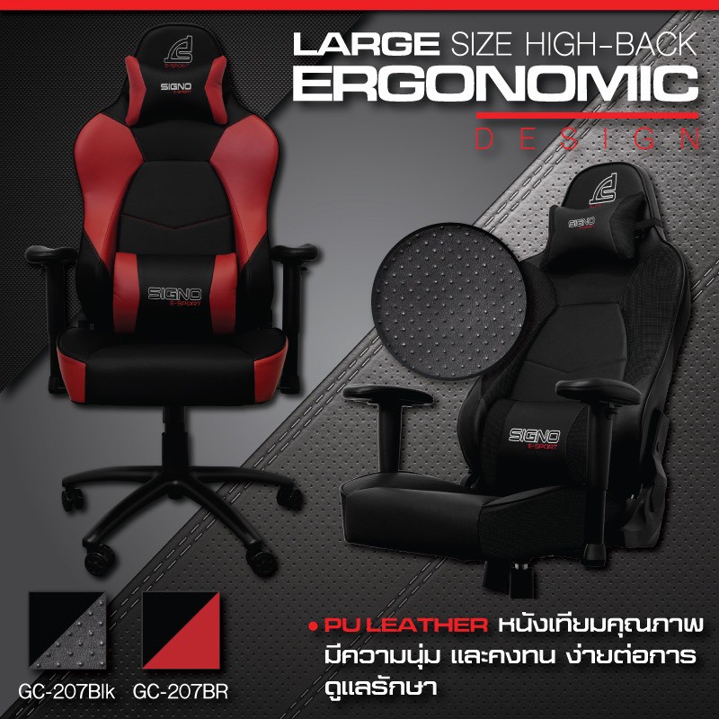 Gaming Chair เก้าอี้เกมมิ่ง Size ใหญ่ Signo GC-207 รองรับได้ถึง 150 K.G..