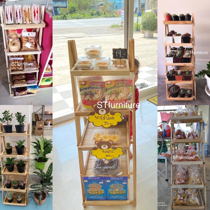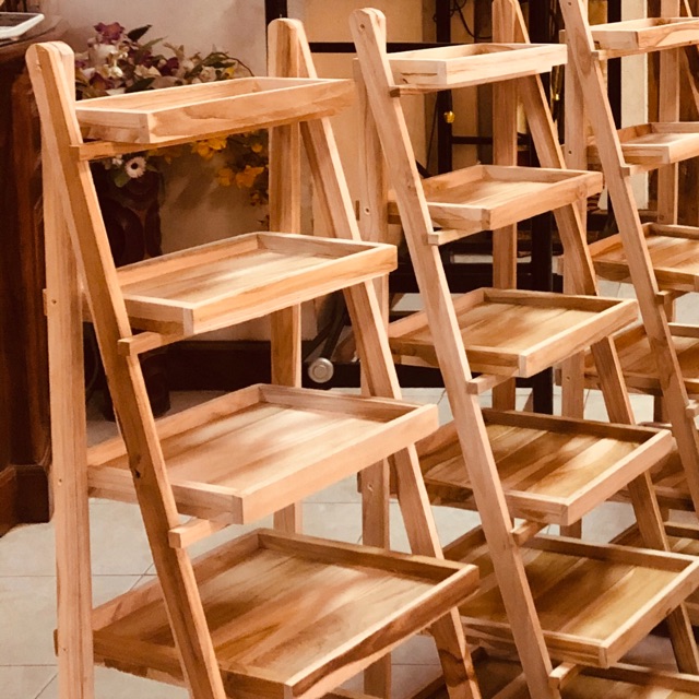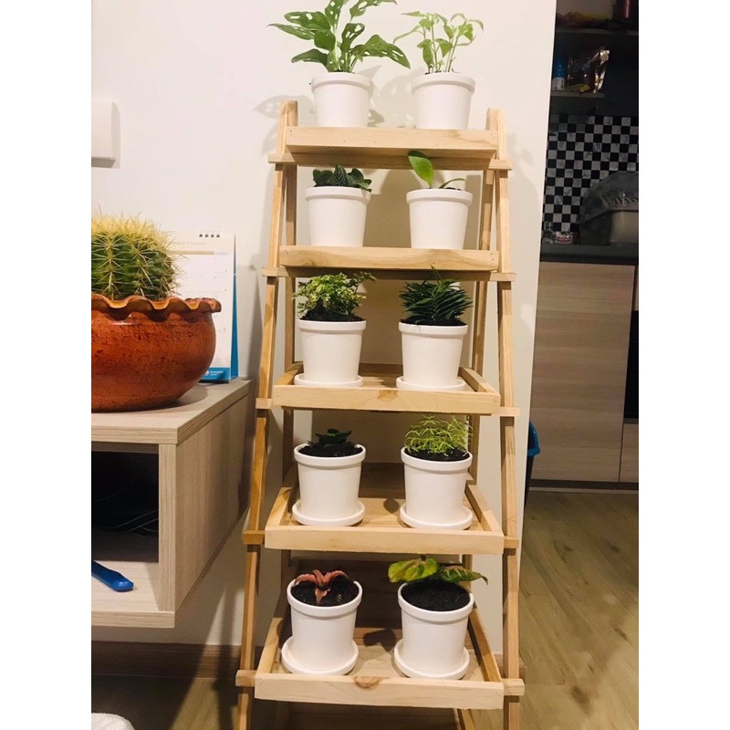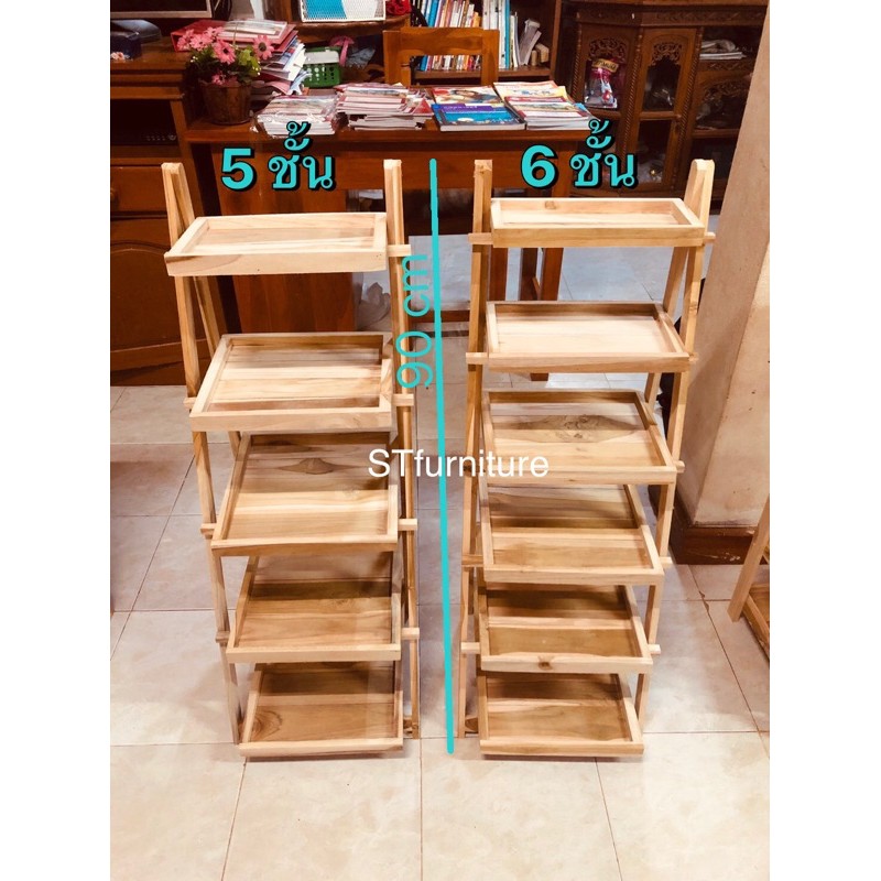 (ส่งไวมาก)หกชั้นวางต้นไม้พับเก็บได้ทำจากไม้สักดิบสีธรรมชาติ