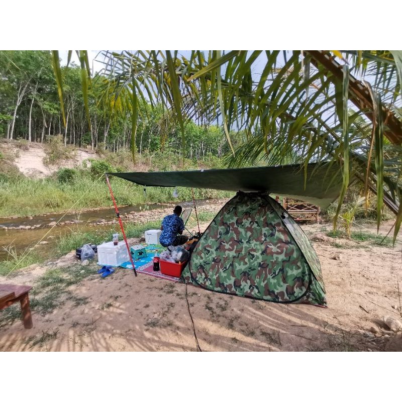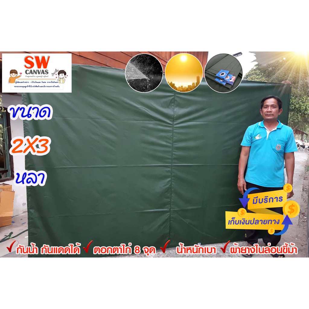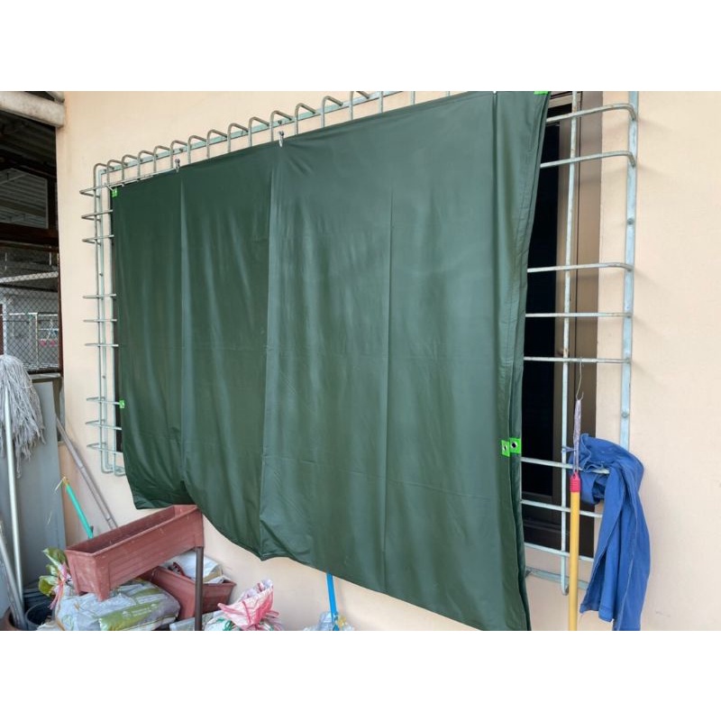 ผ้าใบกันแดด กันฝน "ผ้ายางไนล่อนสีขี้ม้าแบบบาง" ขนาด 2x3 หลา พร้อมตอกตาไก่ ง่ายต่อการติดตั้ง
