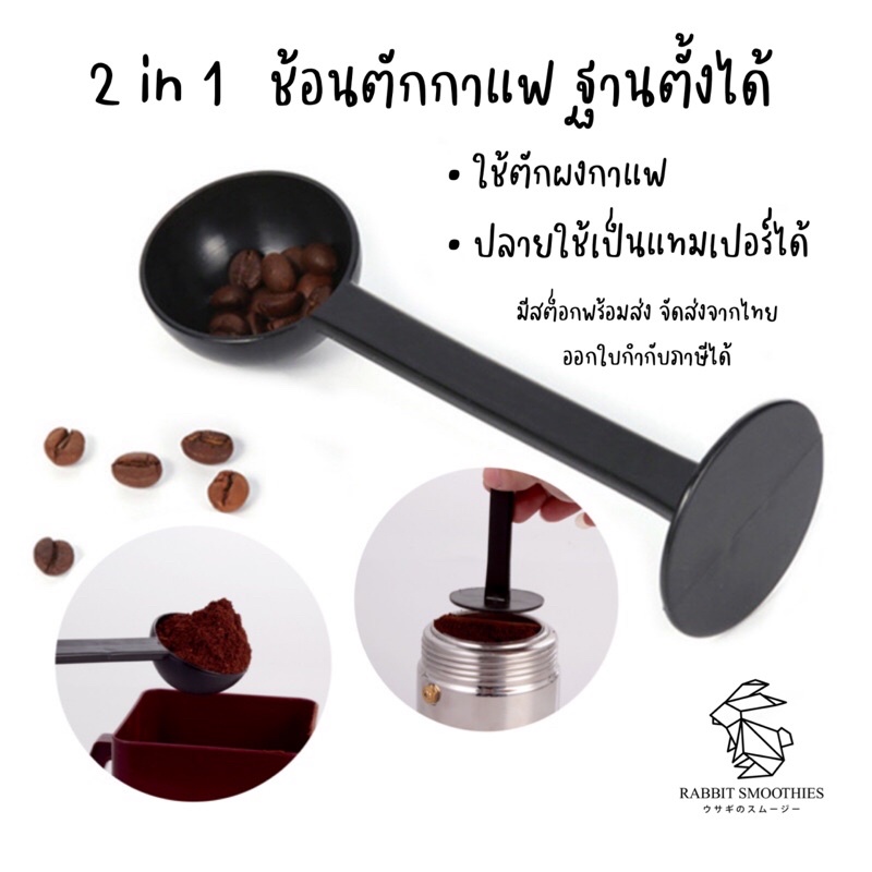 QZPL4Z ลด 8% สูงสุด 99 ช้อนตวงกาแฟ ปลายแทมเปอร์ 2 in 1 ช้อนตวง ช้อนตักผงกาแฟ ที่กดกาแฟ ฐานตั้งได้