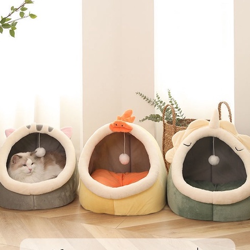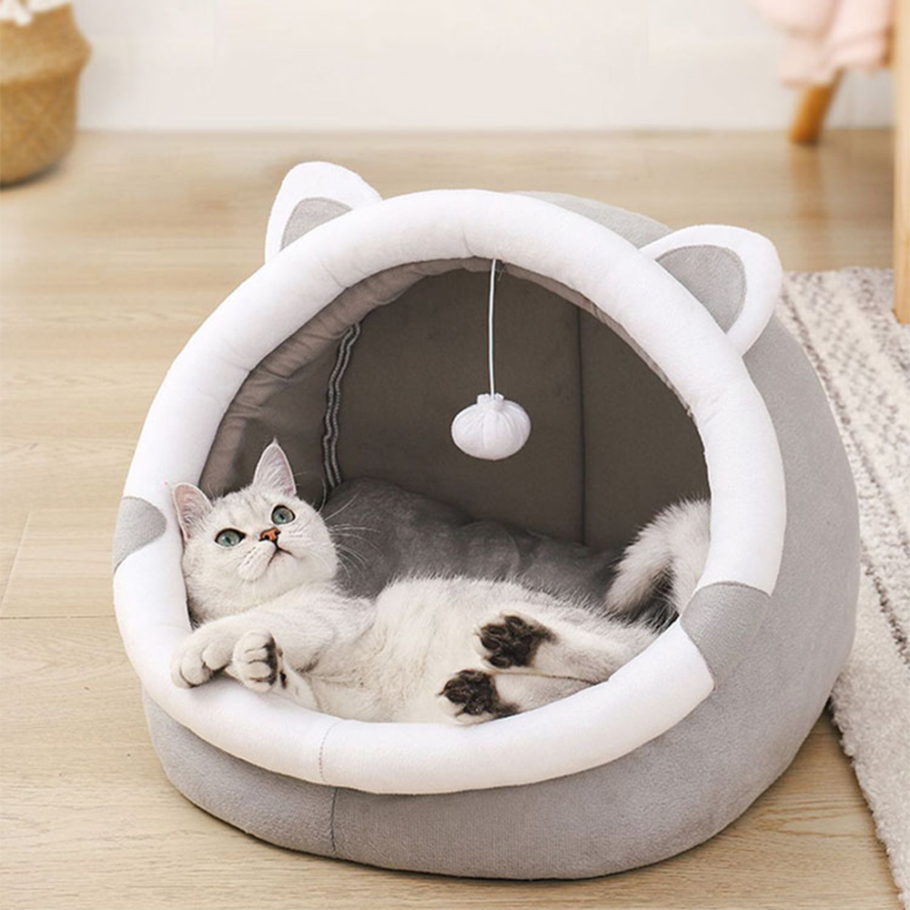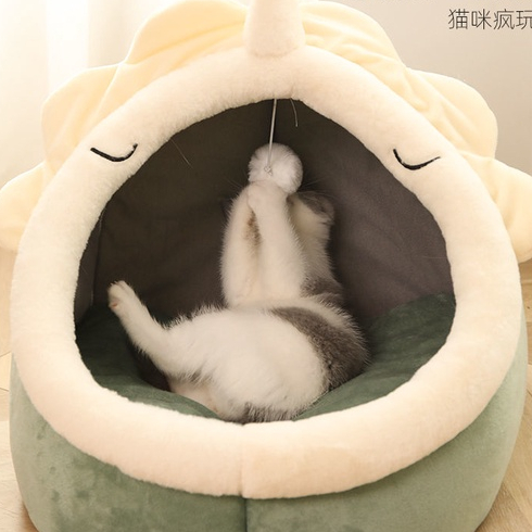 Boqi Factory บ้านแมว ที่นอนสัตว์เลี้ยง ที่นอนแมว เบาะโดมที่นอนแมวแบบกึ่งปิด นอนสบา ยนุ่มนิ่ม Lazycat