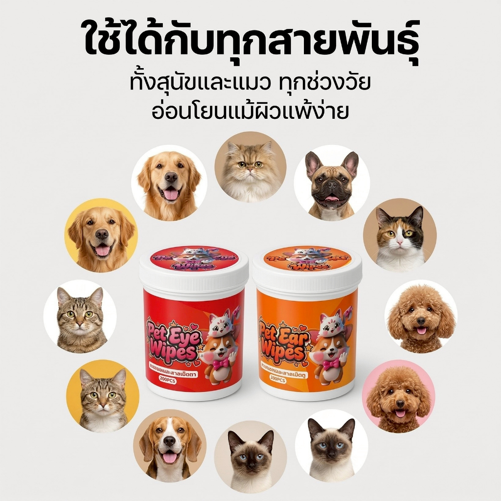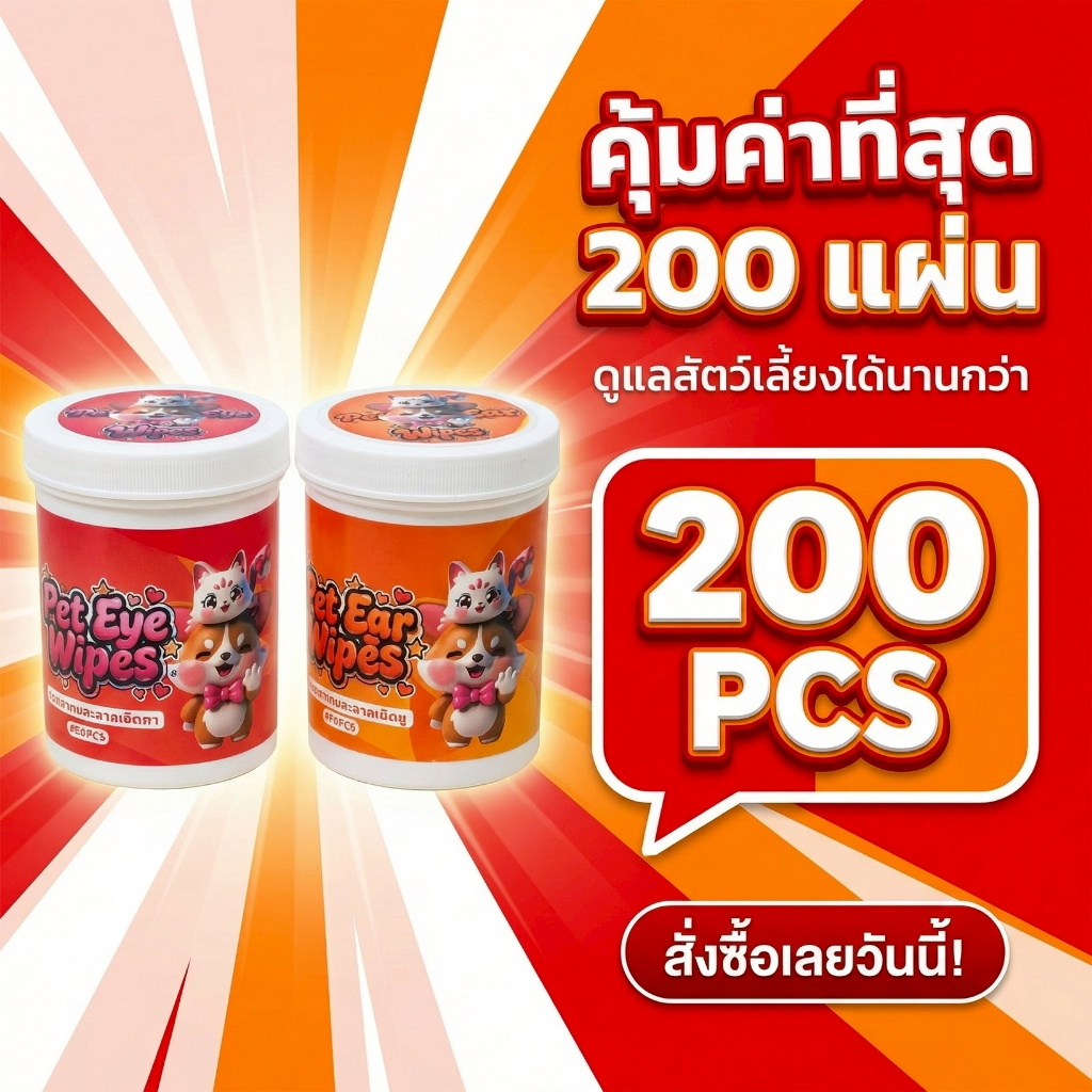 Boqi Factory ผ้าเช็ดทำความสะอาดสัตว์เลี้ยง ตา หู แบบอ่อนโยน สำหรับแมวและสุนัข ห่อละ 200 ชิ้น LZ888