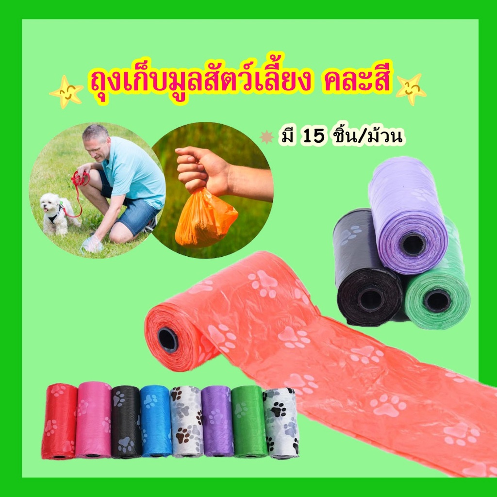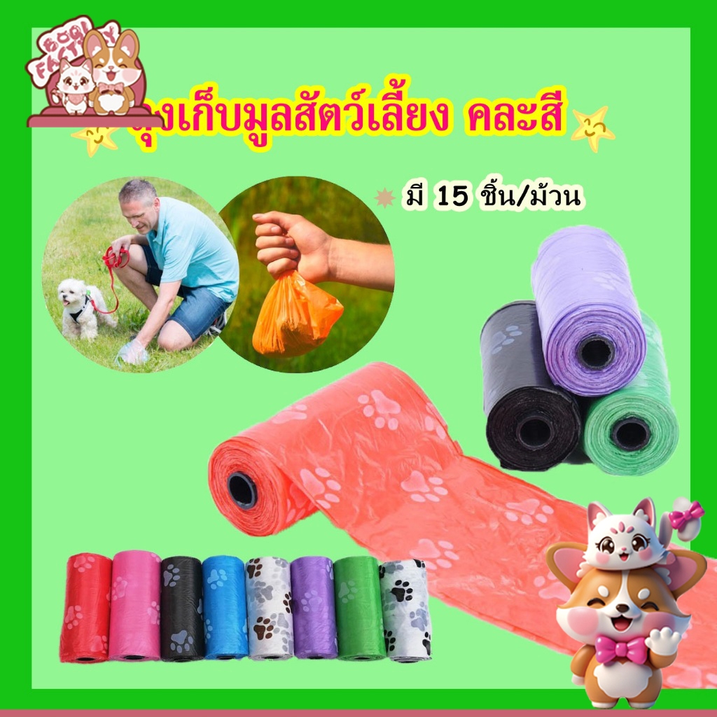 Boqi Factory ถุงเก็บอึหมา แมว พกพา มูลสุนัข คละสี 1 แพ็ค มี 3 ม้วน Trash bag