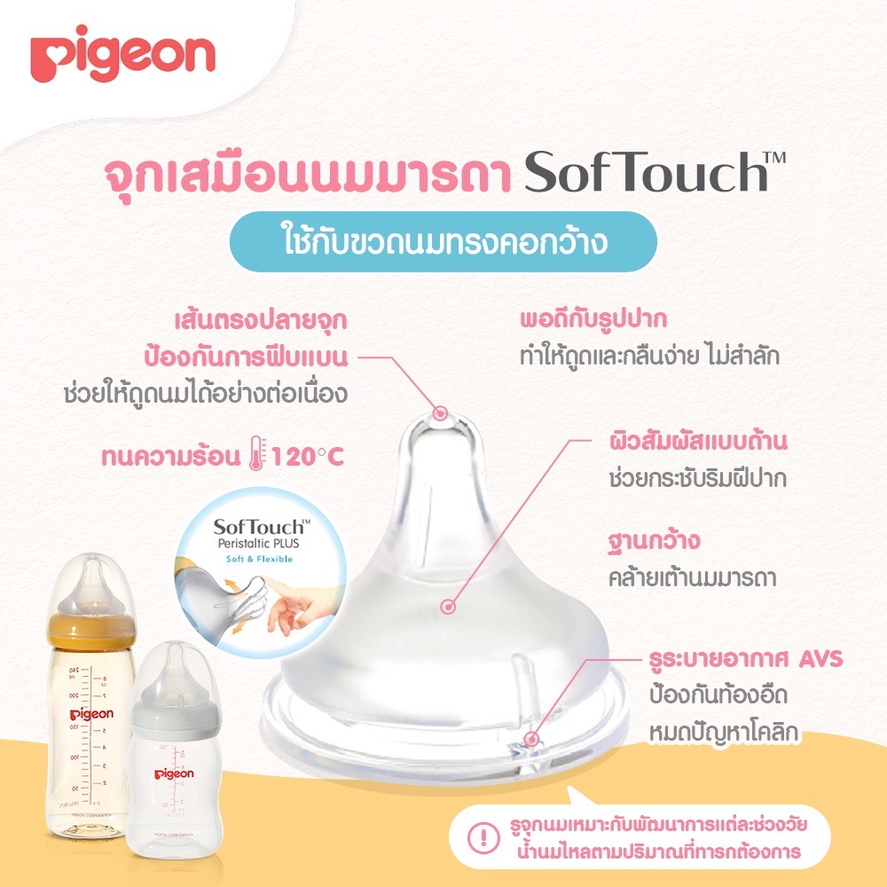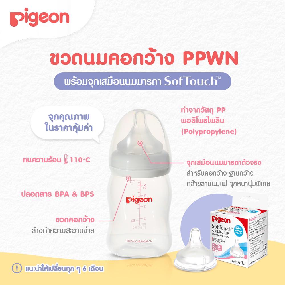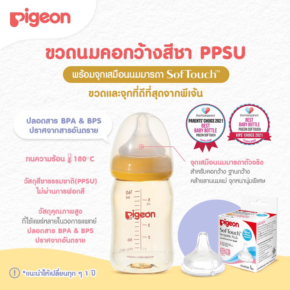 ขวดนมสี ชาและสีขุ่น Pigeon คอกว้าง พร้อม จุกนมเสมือนนมมารดา
