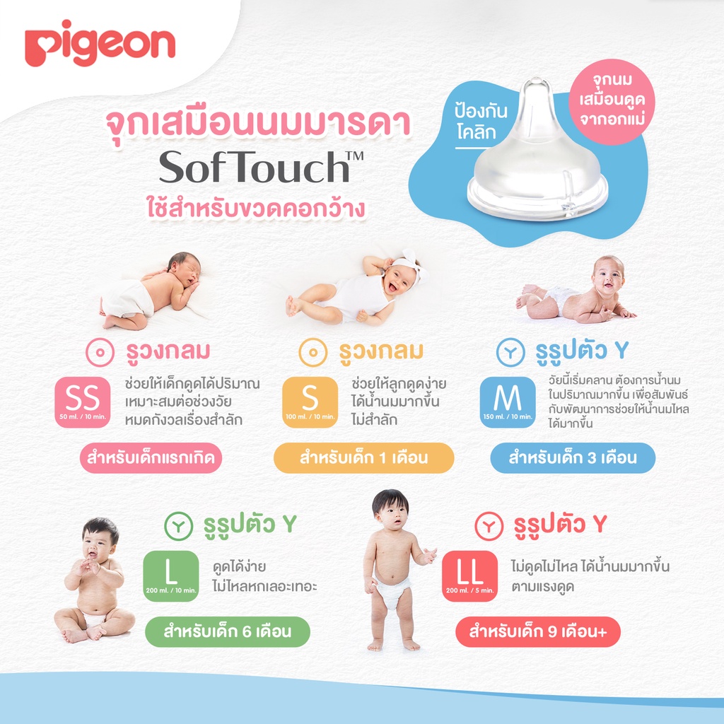จุกนม Pigeon สำหรับขวดนม คอกว้าง / คอแคบ