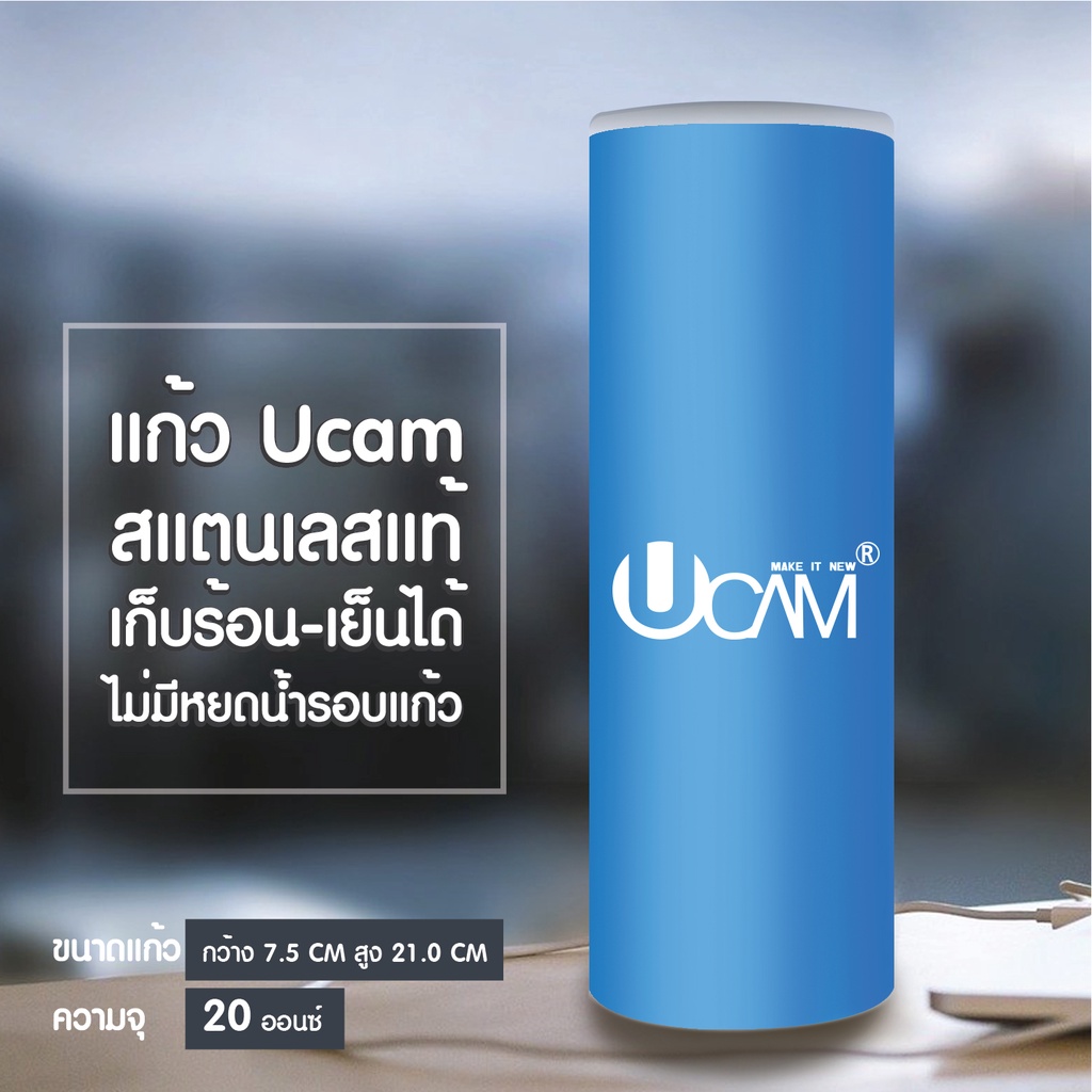Ucam แก้วเก็บอุณหภูมิได้ทั้งร้อนและเย็น ทรงกระบอกขนาด20oz. พกพาสะดวกสบาย พร้อมฝาสไลด์เปิดปิดได้ด้วย