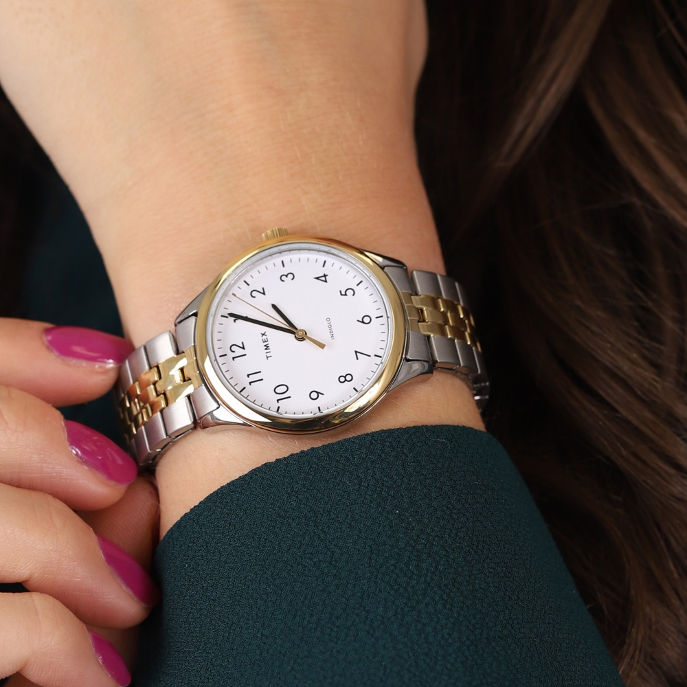 Timex TW2U40400 Modern Easy Reader นาฬิกาข้อมือผู้หญิง สายสแตนเลส Two-tone หน้าปัด 32 มม.
