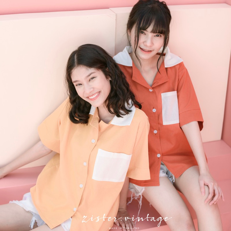 ZISTER | ZV0088 Two-tone Basic top เสื้อเชิ้ตโอเวอร์ไซต์ ทูโทน สุดน่ารัก