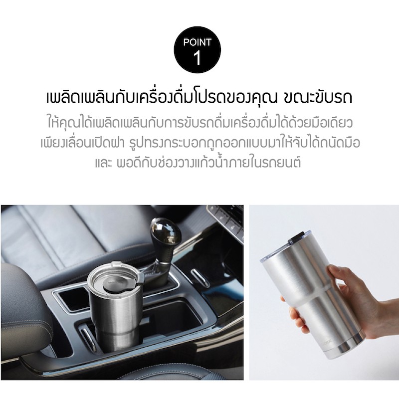 LocknLock แก้วน้ำเก็บความร้อน-เย็น Swing Tumbler 880มล. สีเงิน รุ่น LHC4138SLV