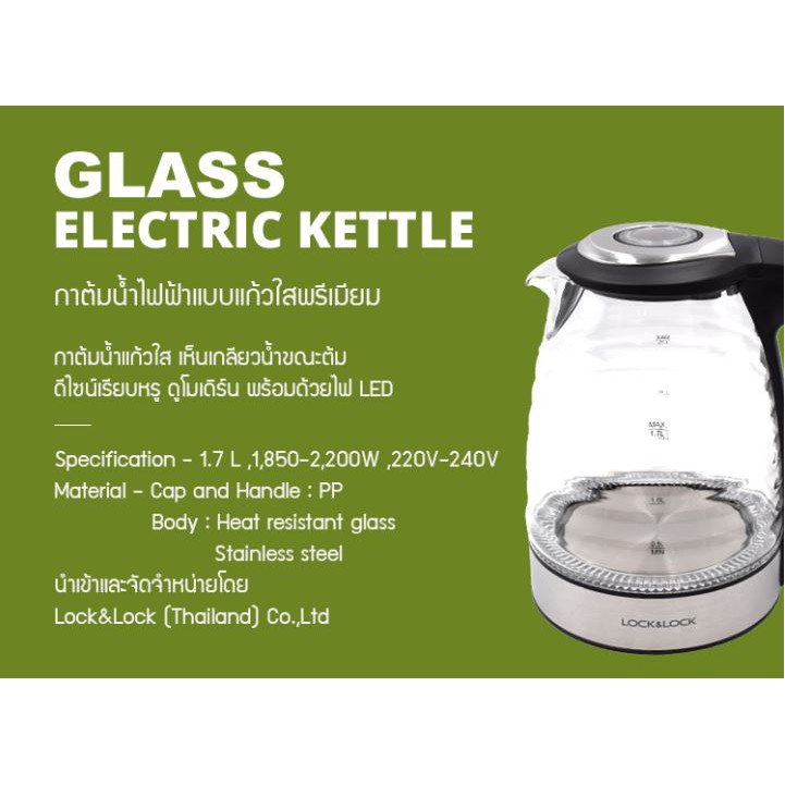 LocknLock กาต้มน้ำไฟฟ้า Electric Kettle ความจุ 1.7ลิตร รุ่น EJK331