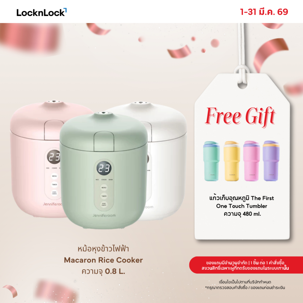 Jenniferoom หม้อหุงข้าวไฟฟ้า Macaron Rice Cooker ความจุ 0.8 L. รุ่น JRTH-R0810
