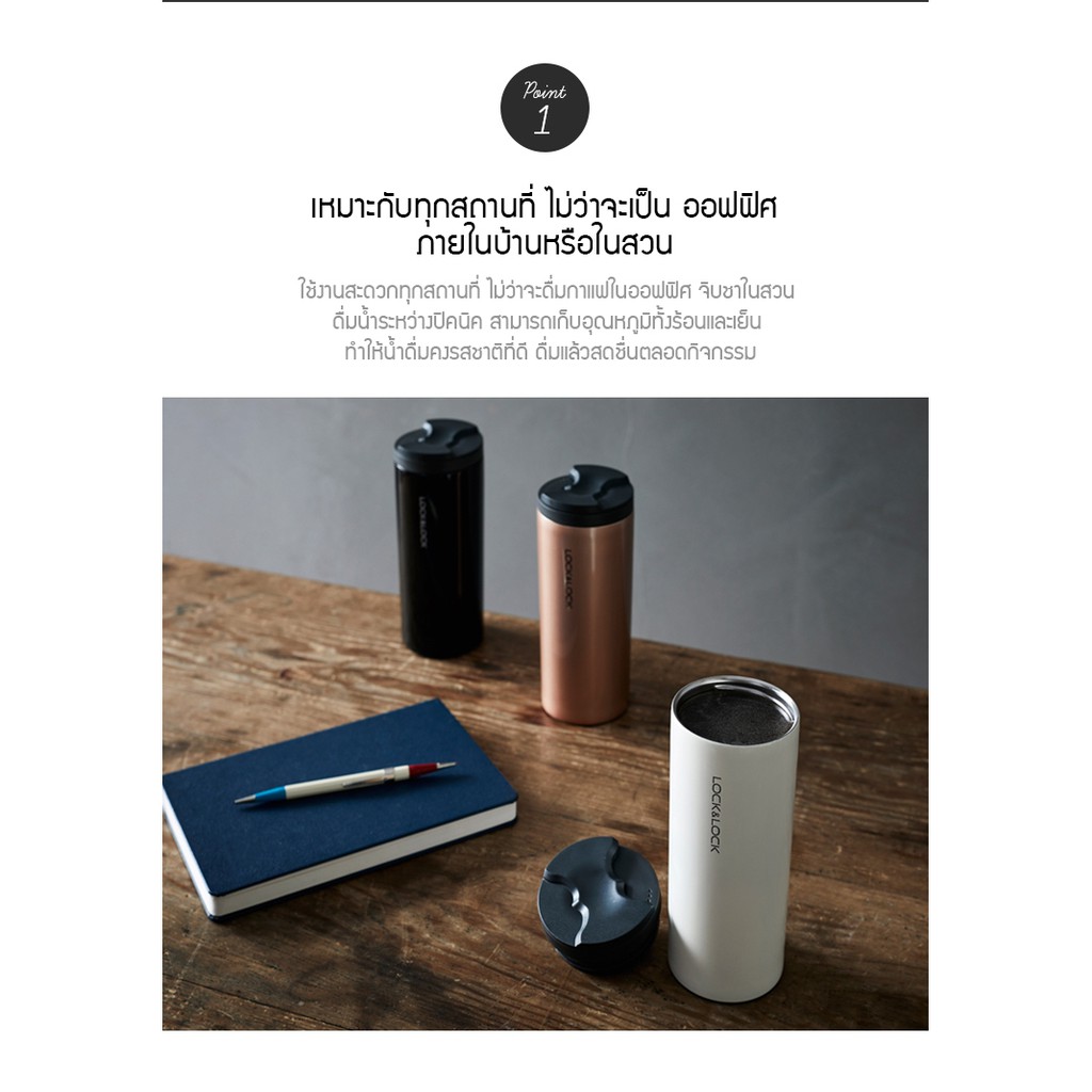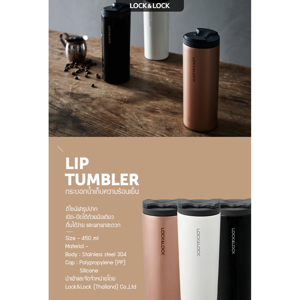 LocknLock กระบอกน้ำเก็บอุณหภูมิ Lip Tumbler ความจุ 450 ml. รุ่น LHC4164