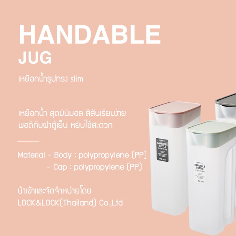 LocknLock เหยือกน้ำรูปทรง Slim Handable Jug ความจุ 1.4 L. รุ่น HAP817