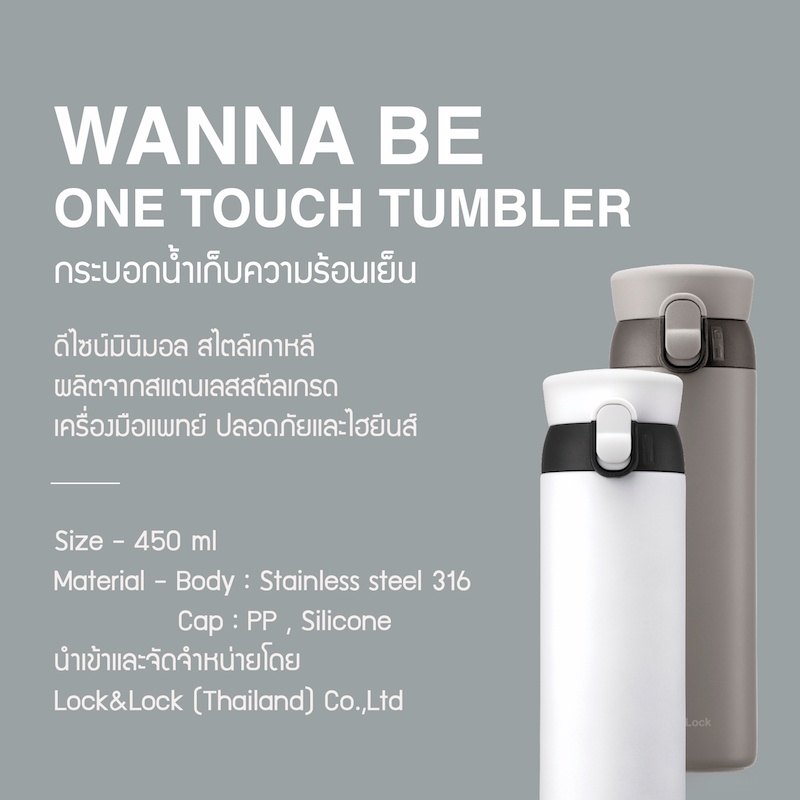 LocknLock ขวดน้ำเก็บอุณหภูมิ Wanna Be One Touch Tumbler ความจุ 450 ml. รุ่น LHC3240