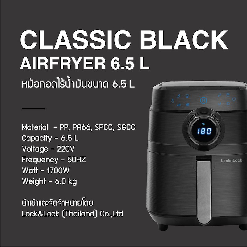 LocknLock หม้อทอดไร้น้ำมัน Classic Black AirFryer ความจุ 6.5 L. รุ่น EJF456BLK