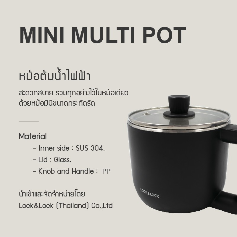 LocknLock หม้อต้มไฟฟ้า Mini Multi Pot ความจุ 0.8 L. รุ่น EJP116BLK