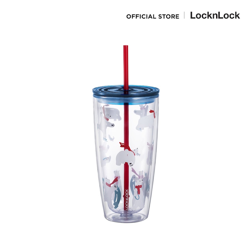LocknLock แก้วพลาสติก 2 ชั้นพร้อมหลอด Double Wall Cold Cup รุ่น HAP507
