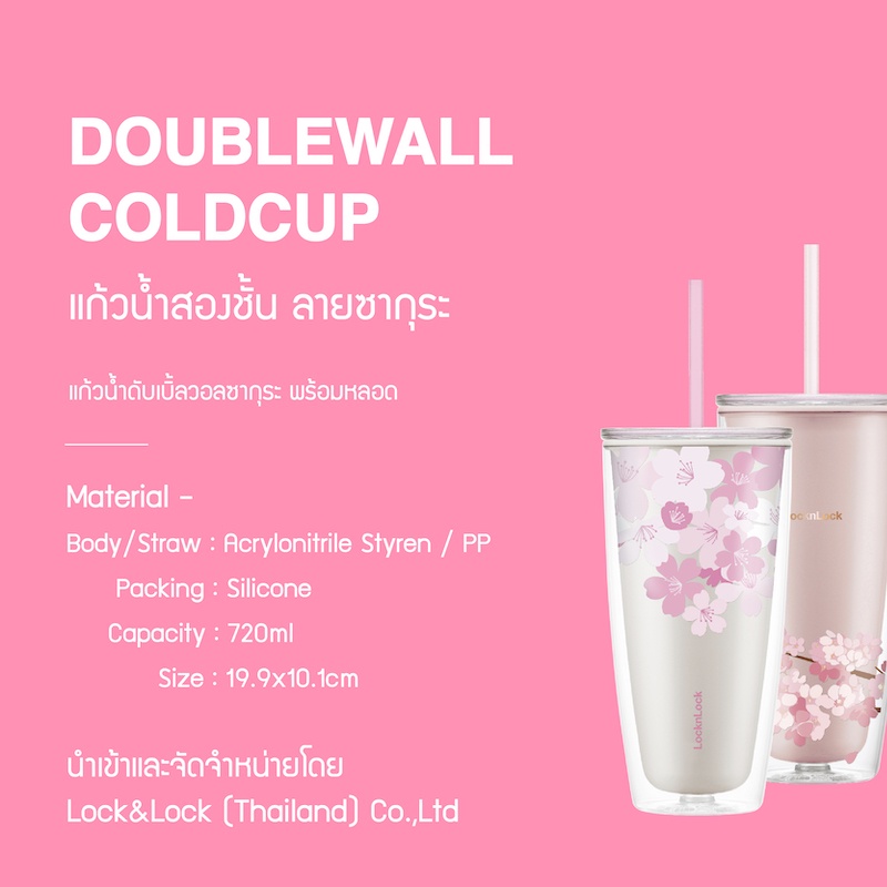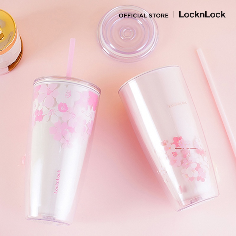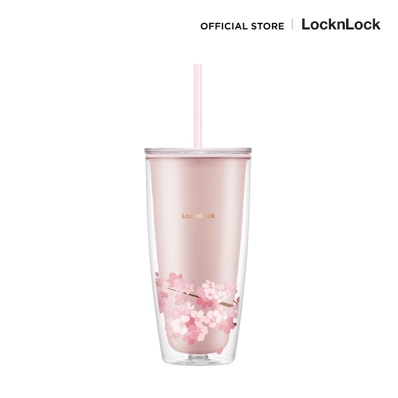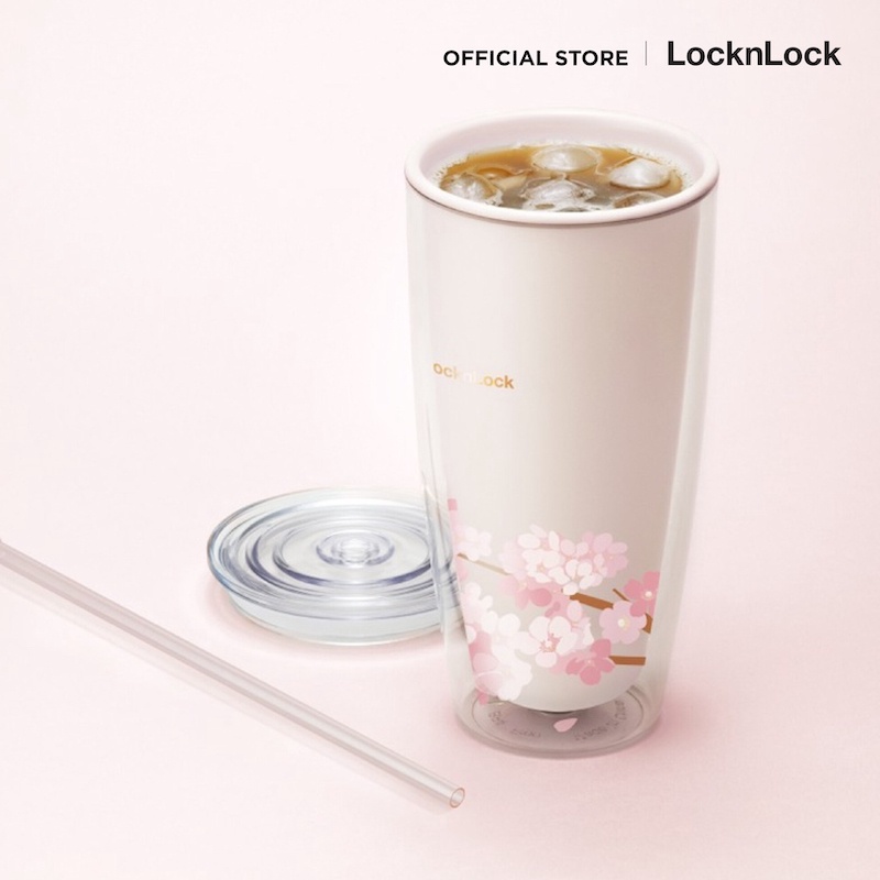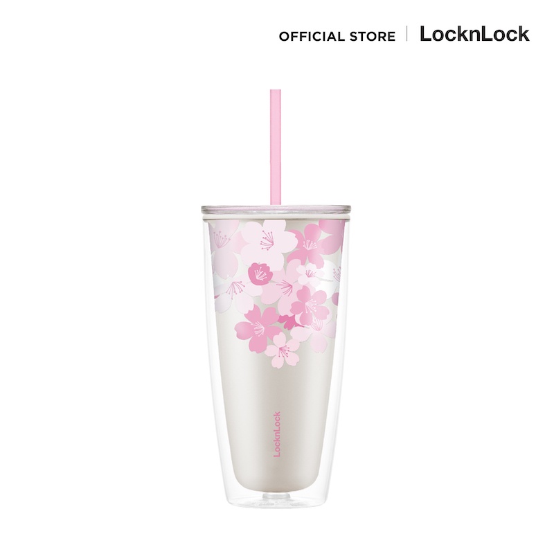 LocknLock แก้วพลาสติก 2 ชั้นลายซากุระ Double Wall Cold Cup 720 ml. รุ่น HAP509