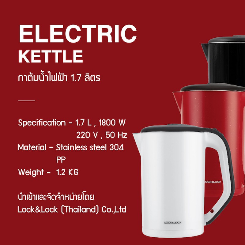 LocknLock กาต้มน้ำไฟฟ้า Electric Kettle ความจุ 1.7 L. รุ่น EJK738