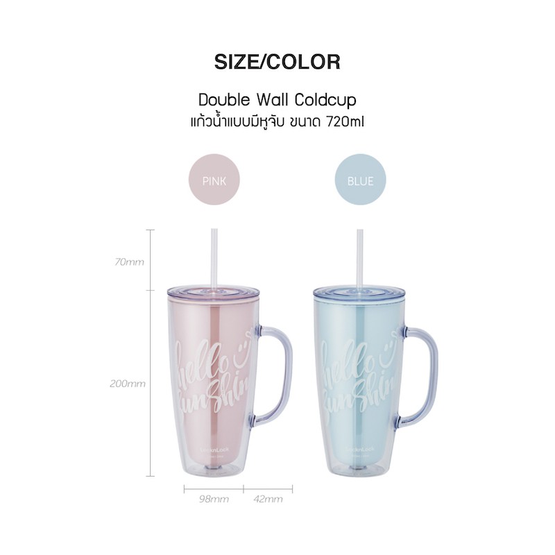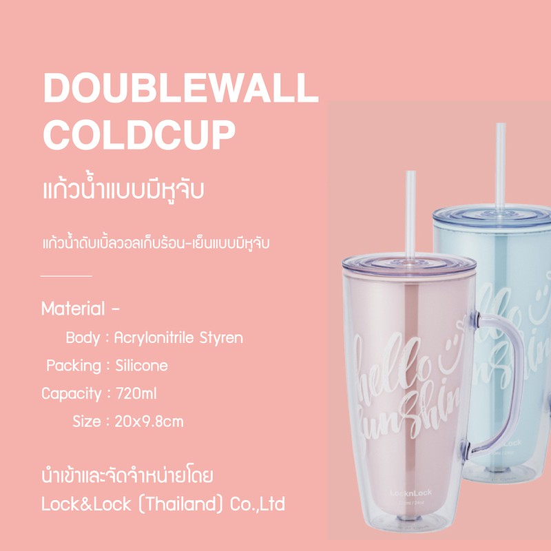 LocknLock แก้วน้ำแบบมีหูจับ Double Wall Cold Cup ความจุ 720 ml. รุ่น HAP503