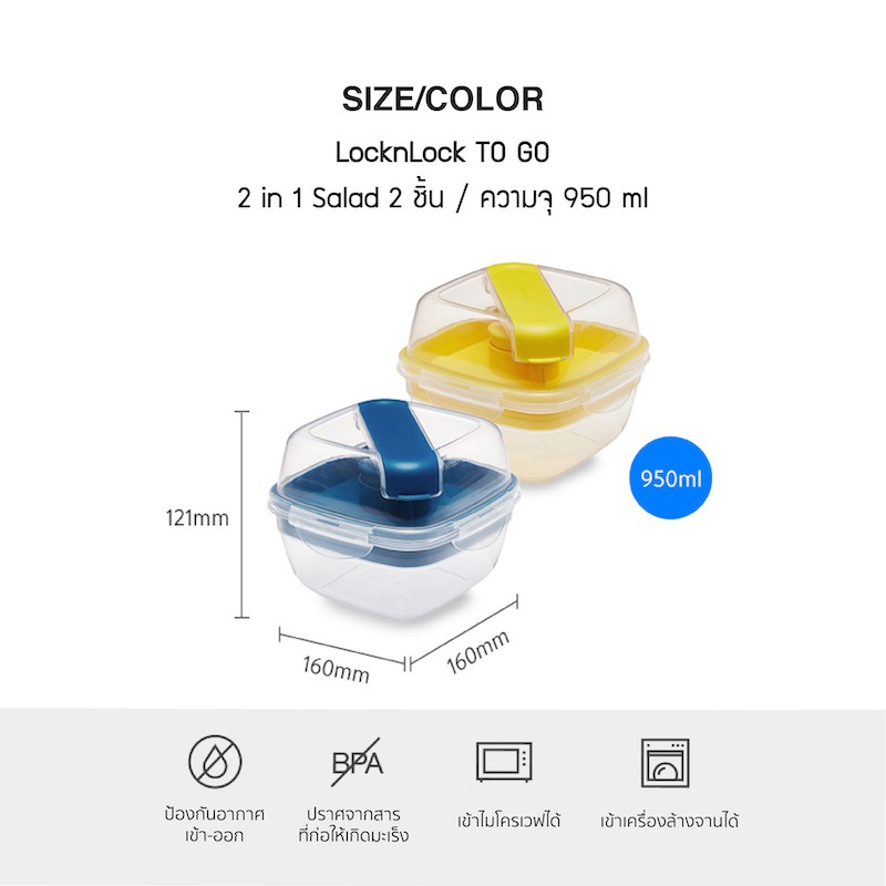 LocknLock กล่องใส่อาหารแบบแบ่งช่อง To-Go Container ความจุ 950 ml. รุ่น HSM8440TL