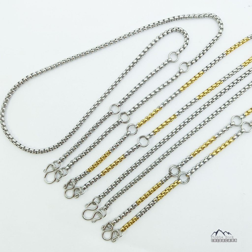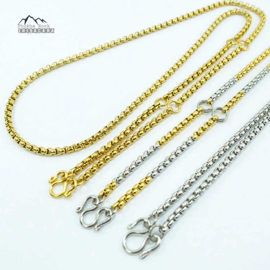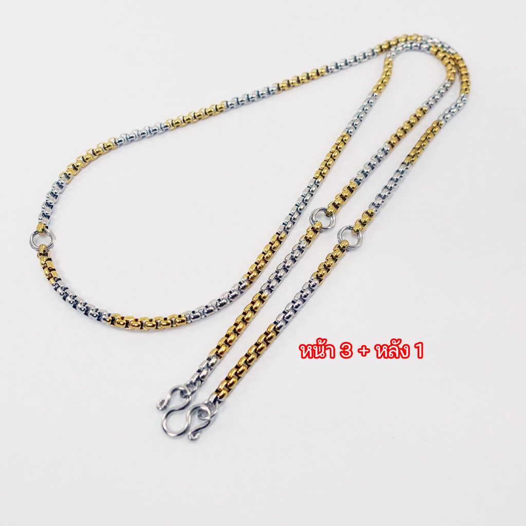 V28 3.5 มม.26 น ิ้ว ลายผ่าหวาย 2k สีเงิน สีทอง แขวน 1-5 องค์ สร้อยคอ ห้อยพระ สร้อยสแตนเลสแท้ สร้อยพระ