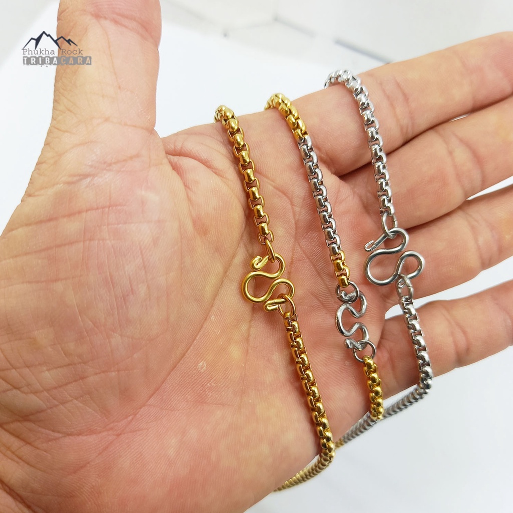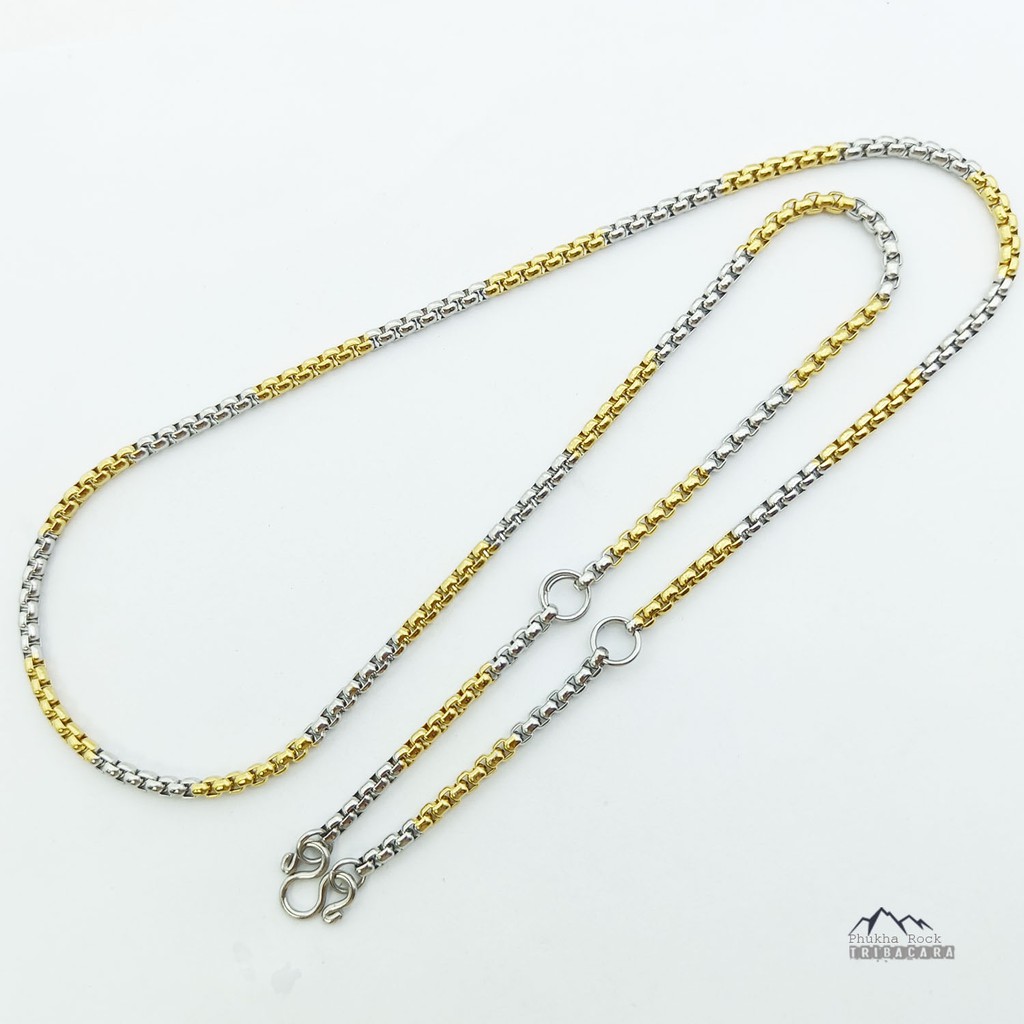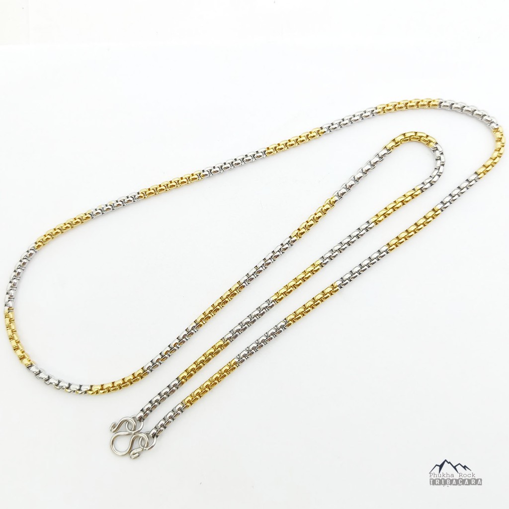 V28 3.5 มม.26 น ิ้ว ลายผ่าหวาย 2k สีเงิน สีทอง แขวน 1-5 องค์ สร้อยคอ ห้อยพระ สร้อยสแตนเลสแท้ สร้อยพระ