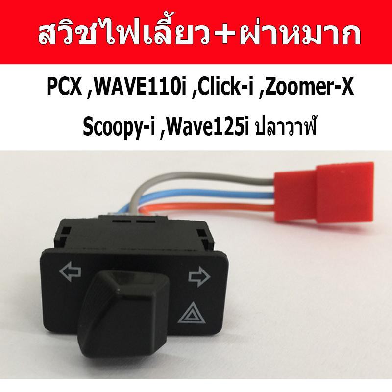(รุ่นใหม่ไม่ต้องใช้สายแปลง) สวิทซ์ไฟเลี้ยวผ่าหมาก Honda-WAVE 125 /WAVE 110i /CLICK i /PCX /ZOOMER-X เท่านั้น