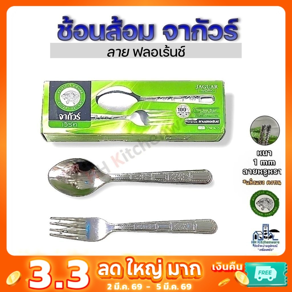 ช้อนส้อมสแตนเลส จากัวร์ 12คู่ หนา 1 มม. ช้อนส้อมจากัวร์ ใช้ทน ลายสวย