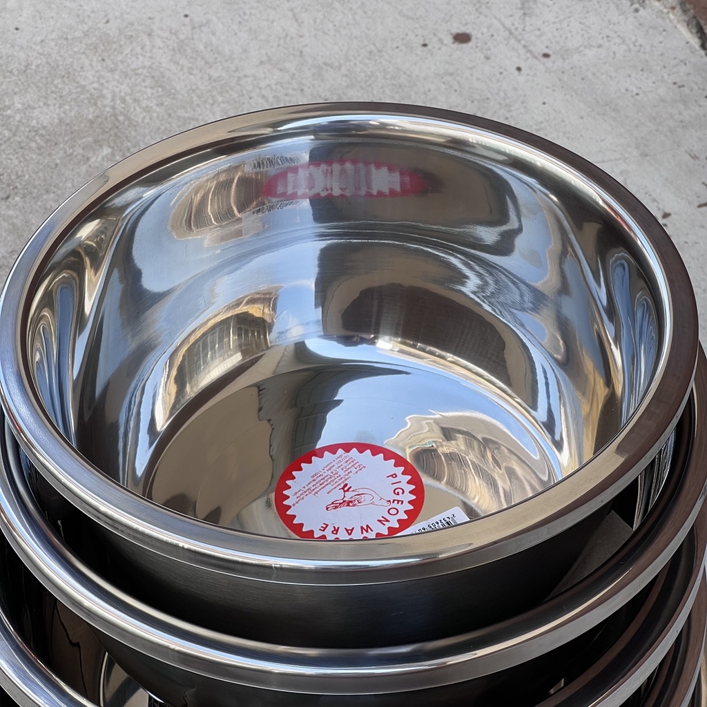 กะละมังสแตนเลส ขนาด 26-36ซม. ขอบหนาเสริมความแข็งแรง ใช้ผสมแป้ง หม้อต้ม ทำสลัด ล้างผักผลไม้