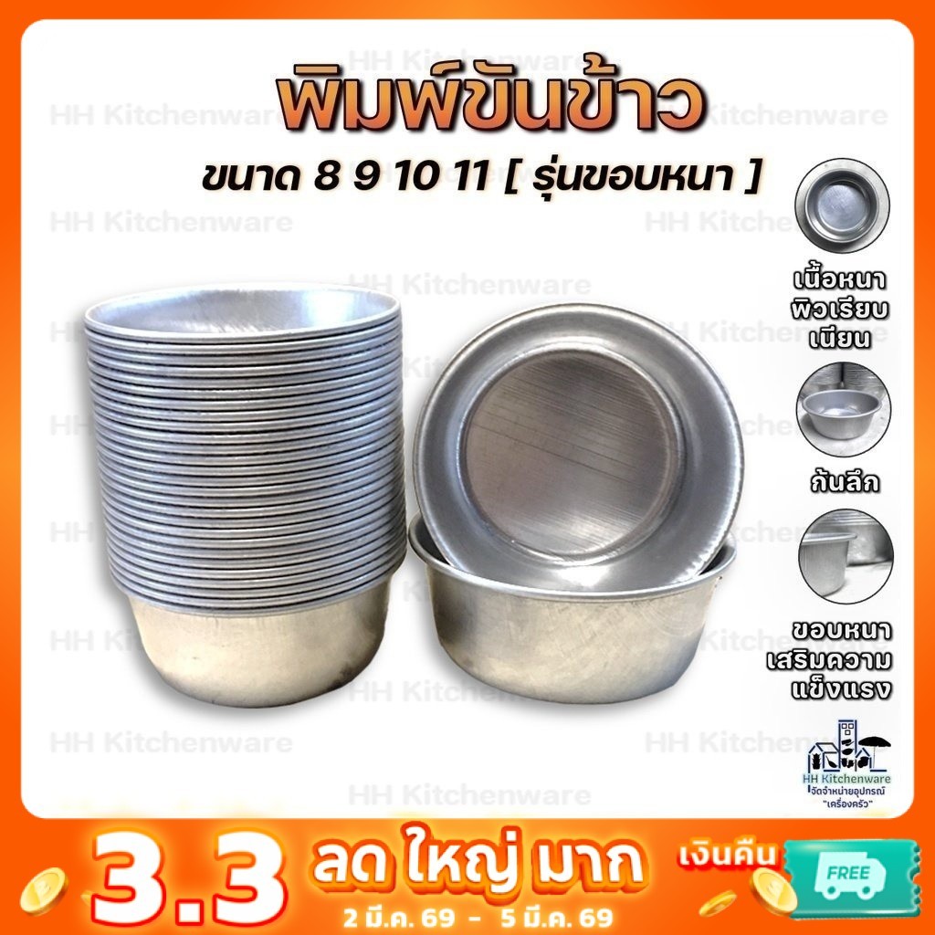 พิมพ์ขันข้าว พิมพ์ขนม ขนาด 8 9 10 11 ซม. รุ่นขอบหนา เสริมความแข็งแรง