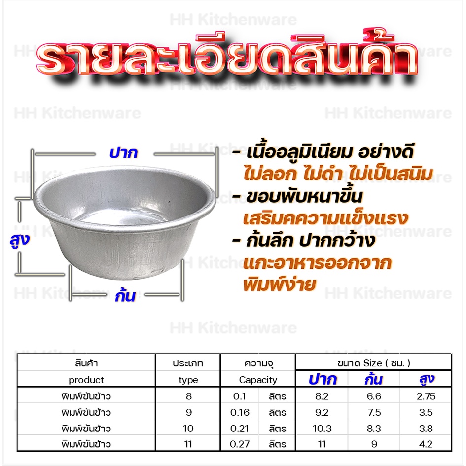 พิมพ์ขันข้าว พิมพ์ขนม ขนาด 8 9 10 11 ซม. ถ้วยนึ่งข้าว พิมพ์นึ่งข้าว ถ้วยนึ่งขนม