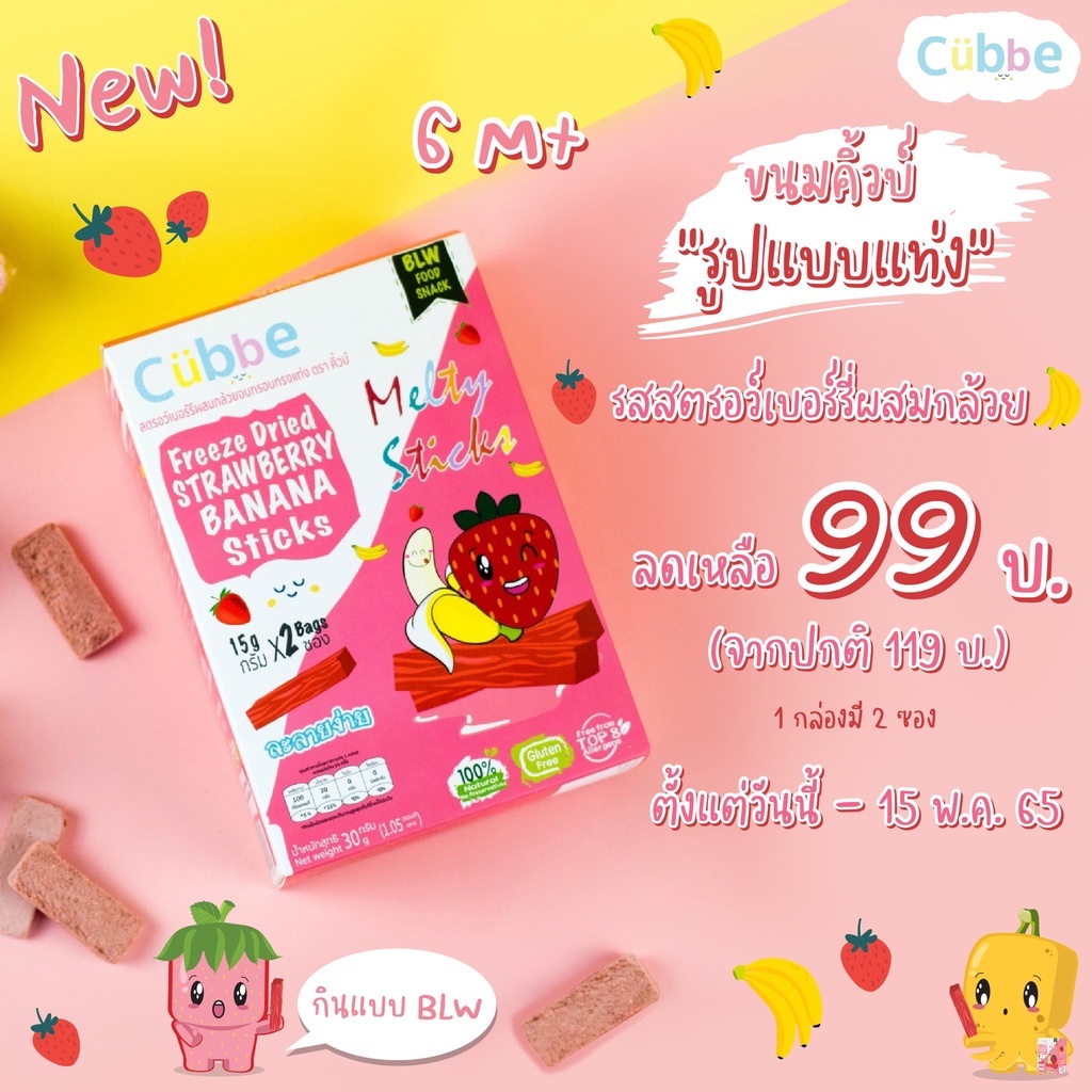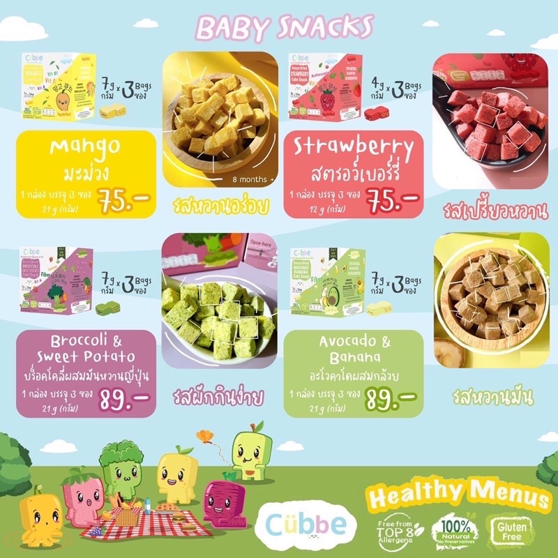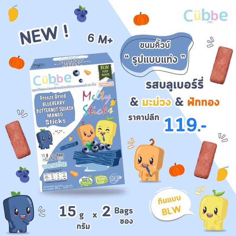 คิ้วบ์ (Cubbe) ผลไม้อบกรอบ กลูเตนฟรี แบบฟรีซดราย ขนมเด็ก สำหรับเด็ก 8 เดือนขึ้นไป หัดเคี้ยว หัดหยิบจับ