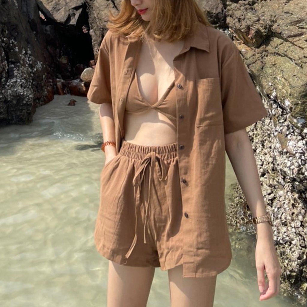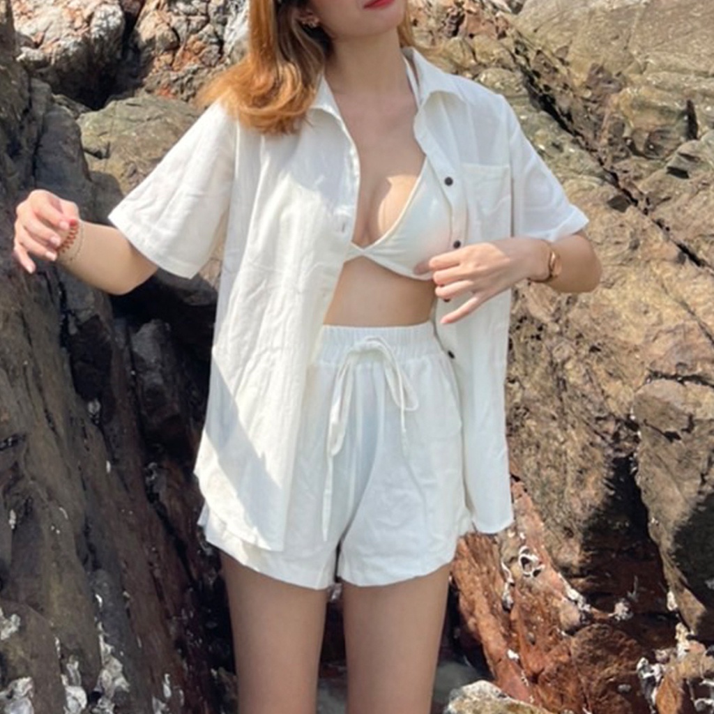 Linin Set ชุดว่ายน้ำเซ็ท3ชิ้น ชุดเซ็ทขาสั้นและชุดเซ็ทขายาว ผ้าลินินแซ่บทะเลเดือด!!
