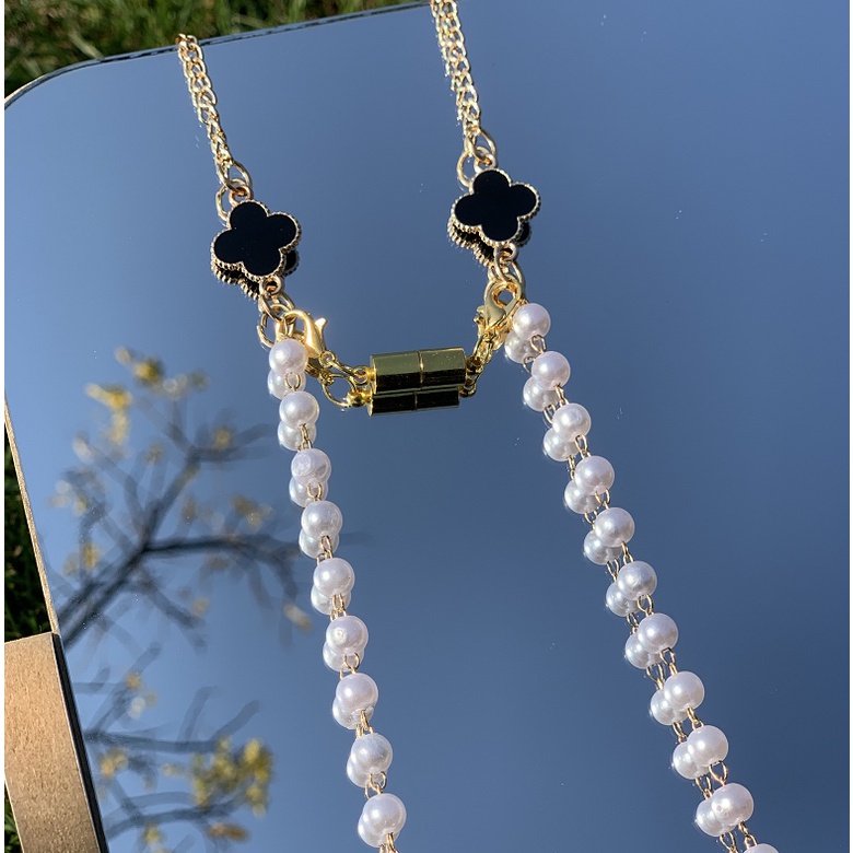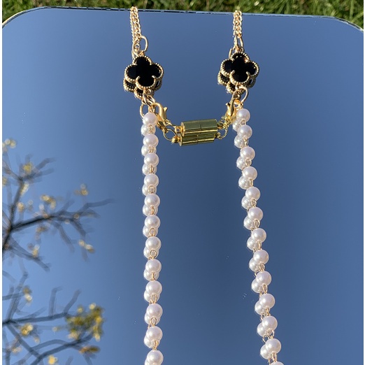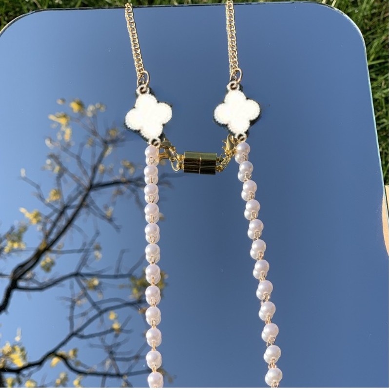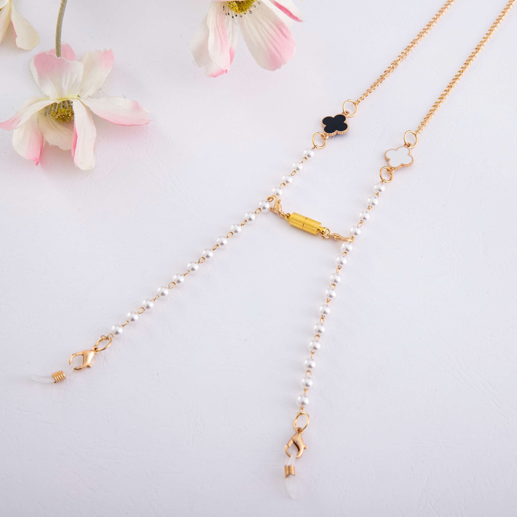 สายโซ่คล้องคอ ประดับลูกปัดไข่มุก สําหรับแว่นตา และหน้ากากอนามัย