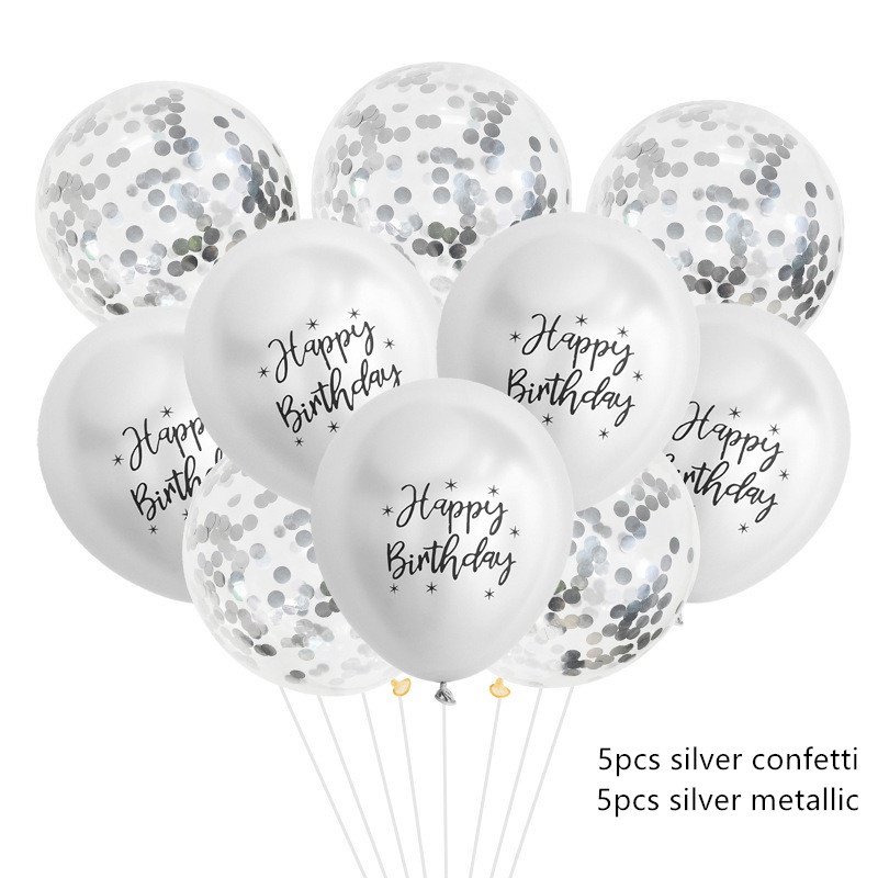 10 ชิ้น 12 นิ้ว เมทัลลิก สุขสันต์วันเกิด ลูกโป่ง ลูกปา โครเมี่ยม โลหะ ลูกโลก ตกแต่งงานเลี้ยงวันเกิด
