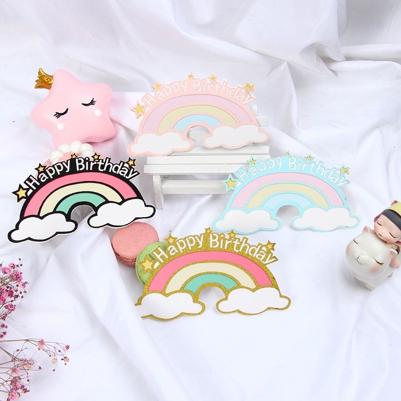 รุ้งป้ายวันเกิด ป้ายHappy Birthday ป้ายเบเกอรี่รุ้ง ป้ายแฮปปี้เบิร์ดน่ารักๆ