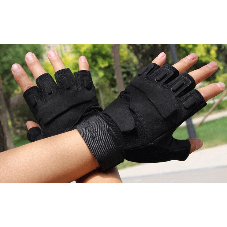 ถุงมือยุทธวิธี (แบบเปิดนิ้ว) ถุงมือฟิตเนส ถุงมือทหาร ถุงมือ แบบเปิดนิ้ว เต็มมือ ถุงมือขี่มอเตอร์ไซค์ รอบวงฝ่ามือ 18-22cm
