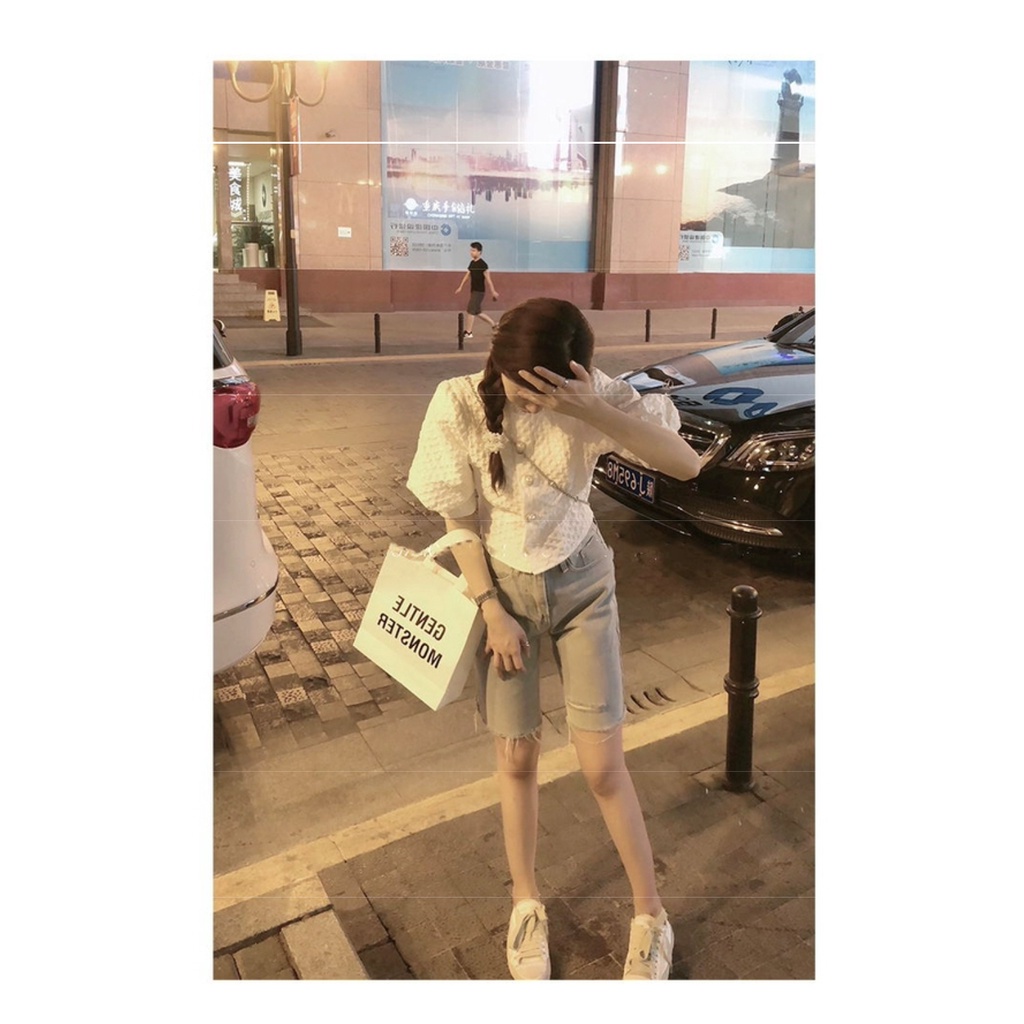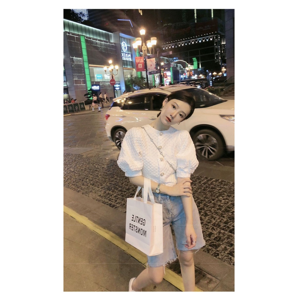 เสื้อเชิ้ตแขนสั้น แขนพอง คอเหลี่ยม สไตล์ฤดูร้อน สำหรับผู้หญิง