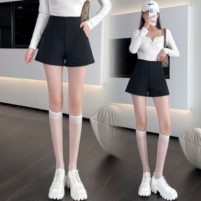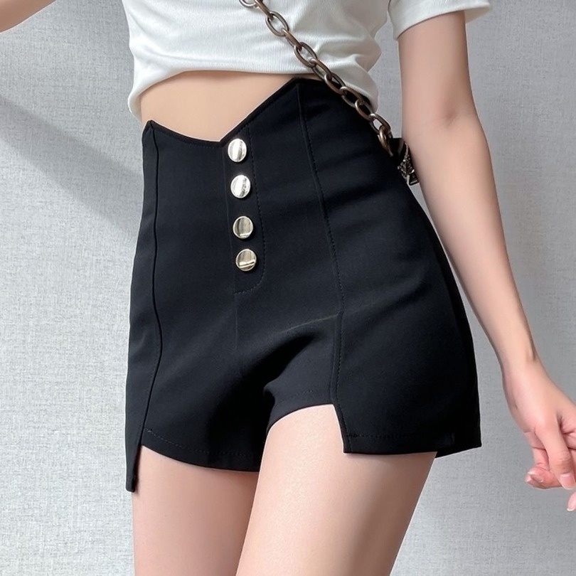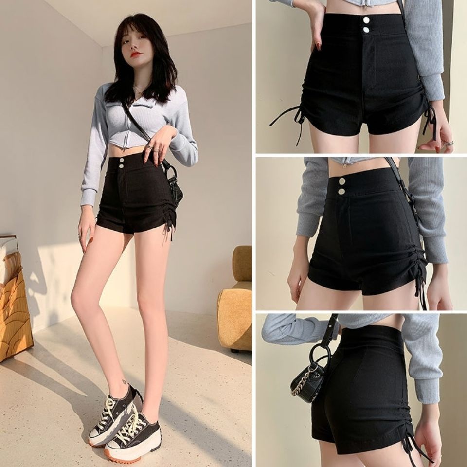 กางเกงกีฬาขาสั้น เอวสูง ลําลอง แบบบาง สีดํา แฟชั่นฤดูร้อน สําหรับผู้หญิง 2022