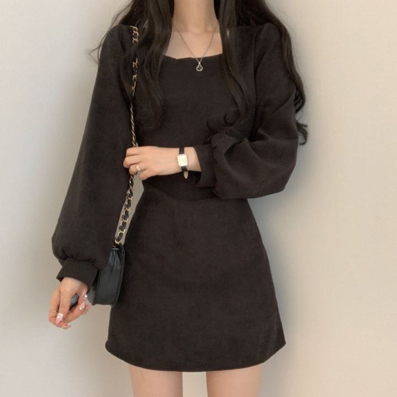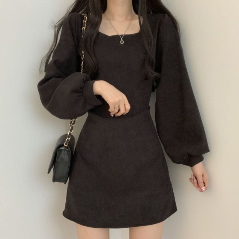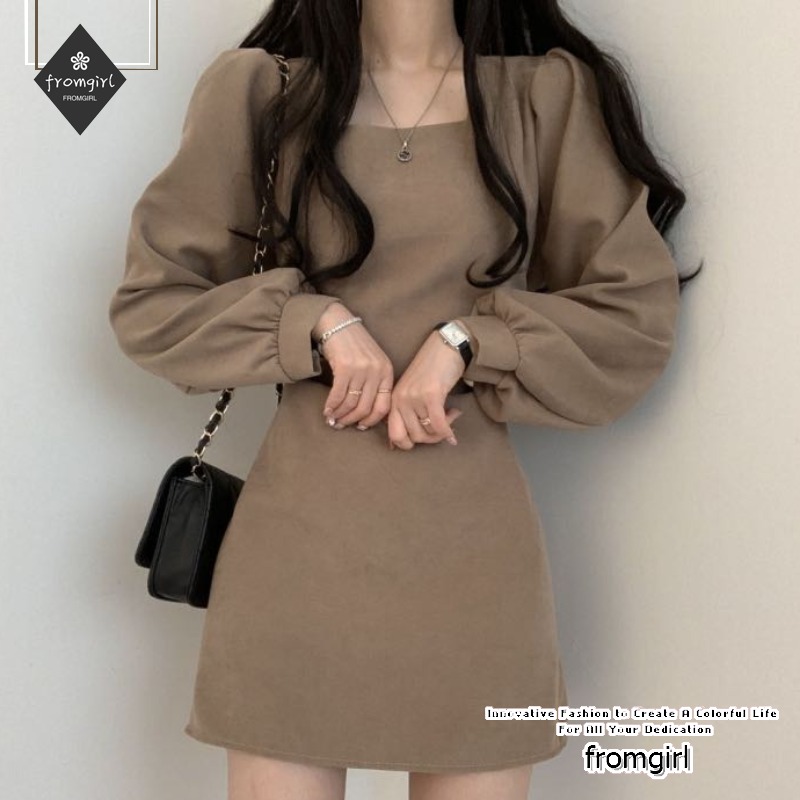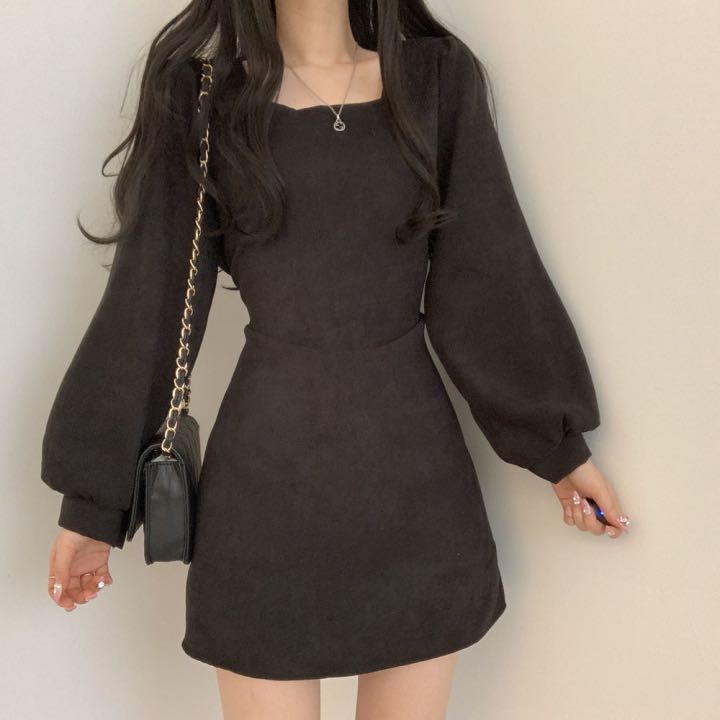 ชุดเดรส แขนสั้น คอเหลี่ยม สไตล์ย้อนยุค เอวสูง เอวบาง เซ็กซี่