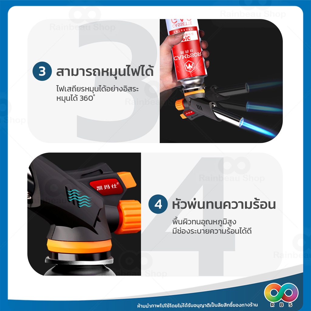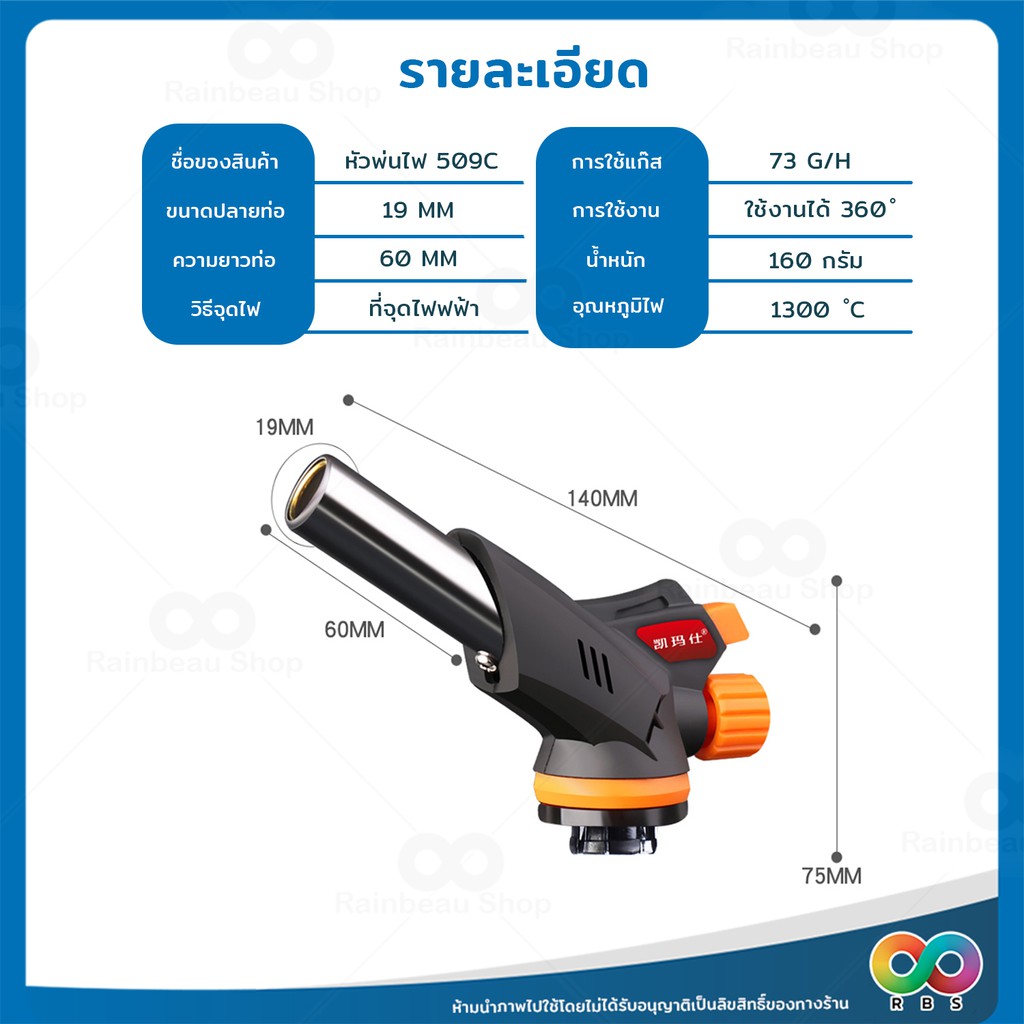🔥ของแท้🔥 RAINBEAU หัวพ่นไฟ หัวพ่นแก๊ส รุ่น 509C หมุนได้ 360° ความร้อนสูง 1300 องศาเซลเซียส ปรับเบา-แรงได้ แคมป์ปิ้ง