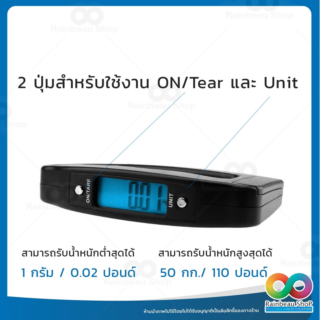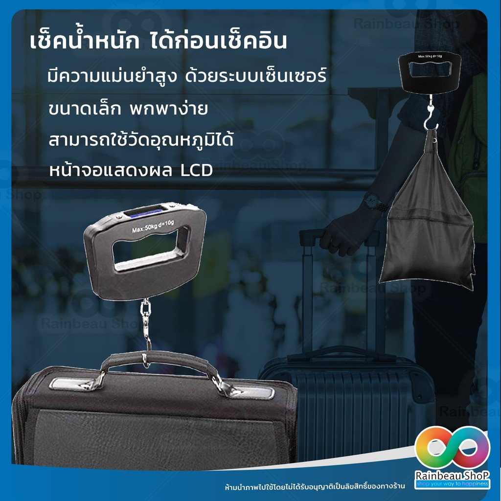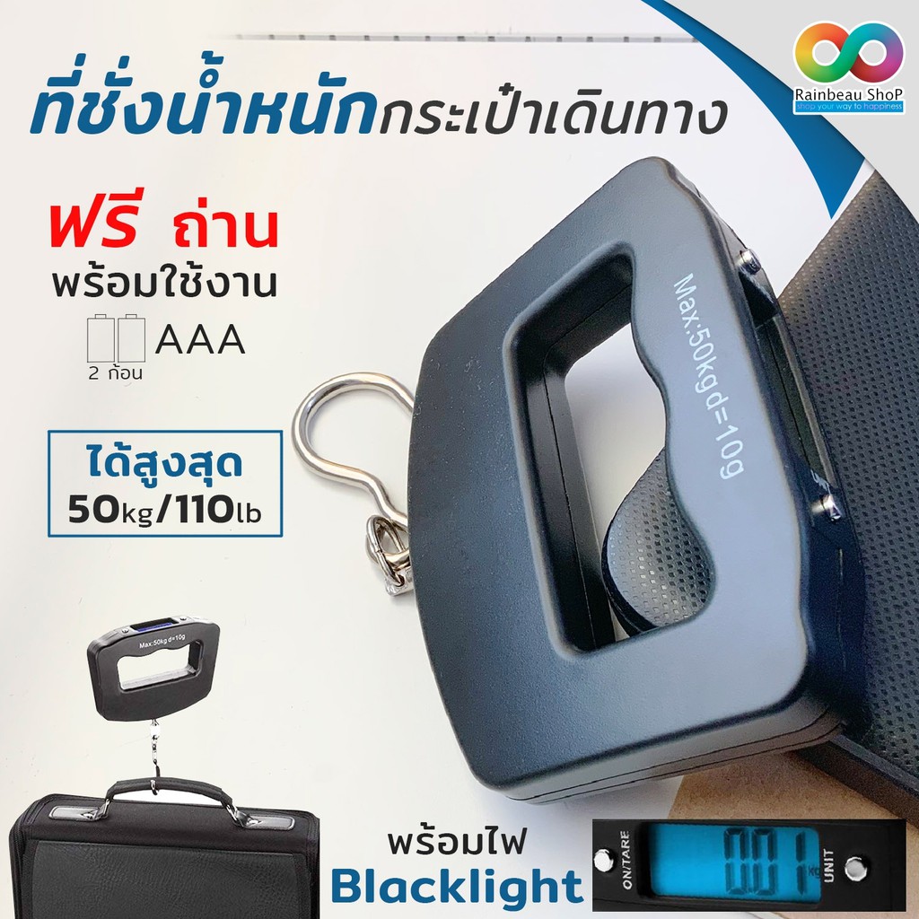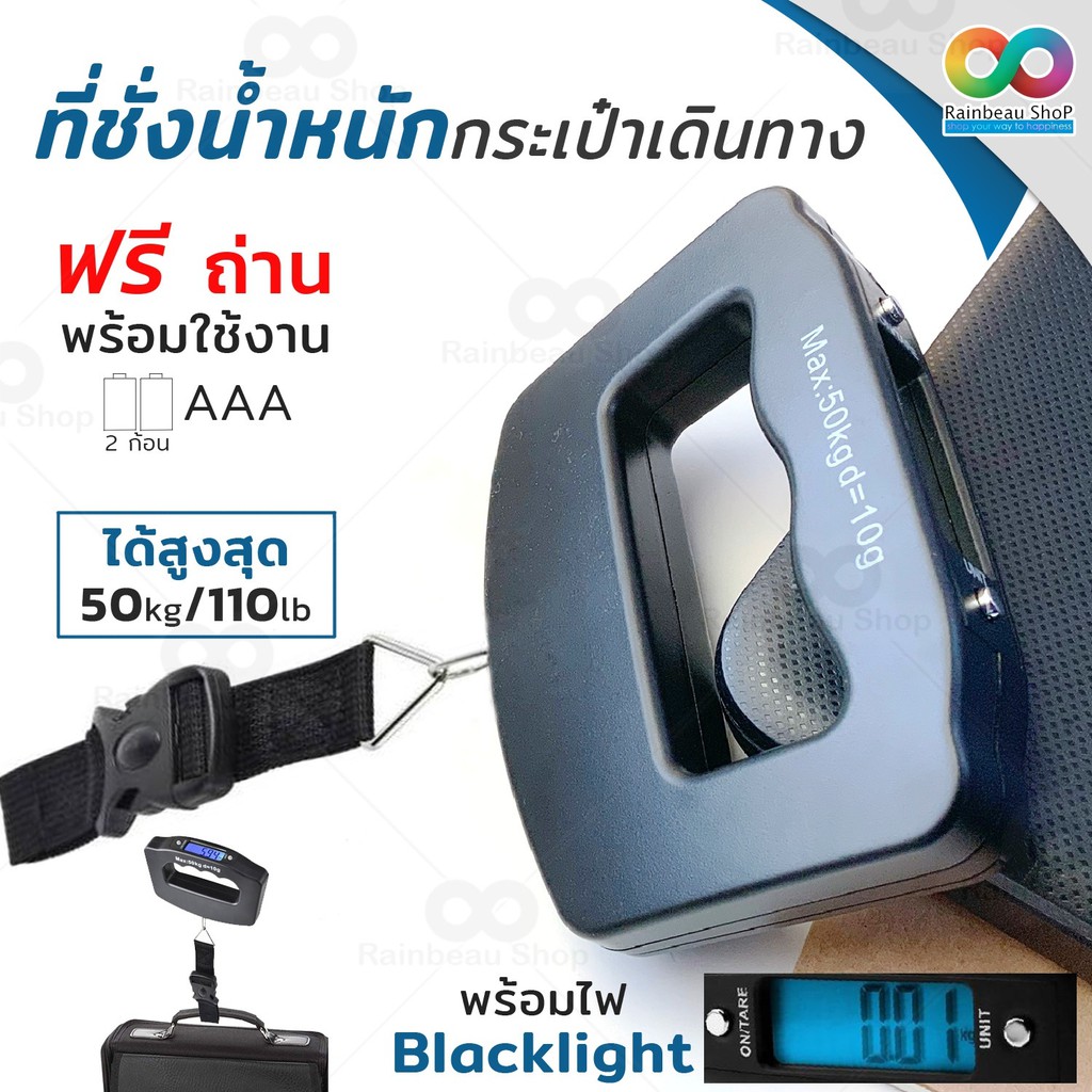 RAINBEAU เครื่องชั่งน้ำหนักกระเป๋าเดินทาง ตาชั่งกระเป๋าเดินทาง Digital Luggage Scale 110lb/50kg จอแสดงผล LCD Diplay