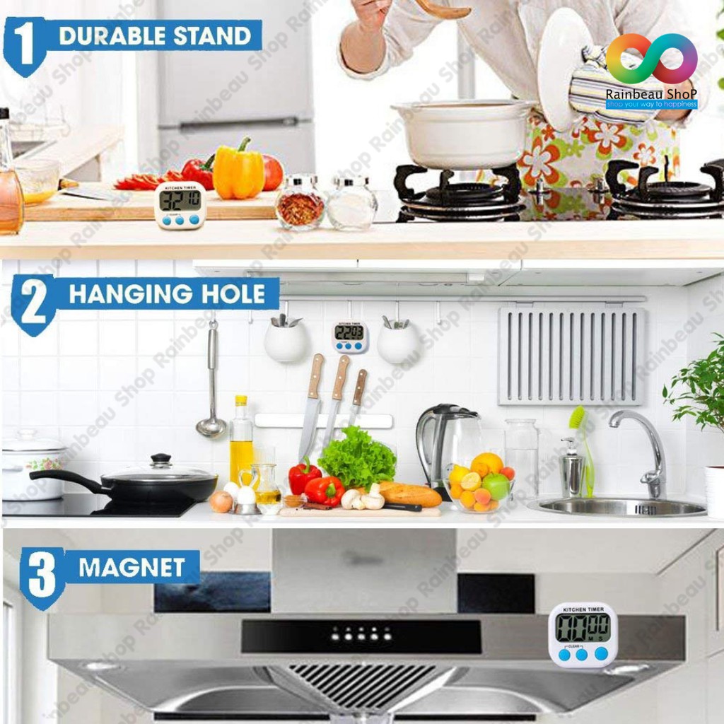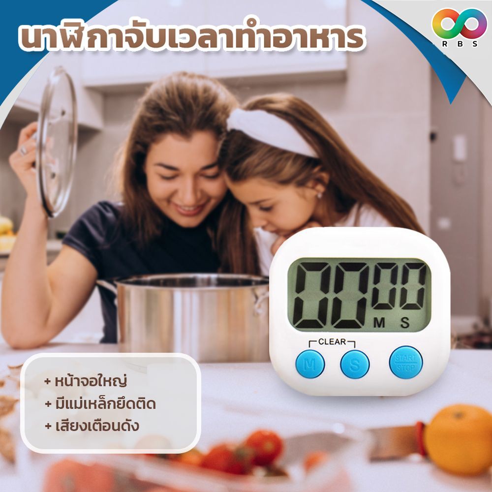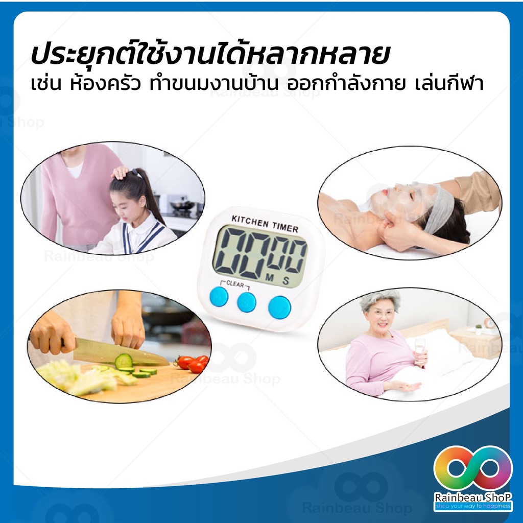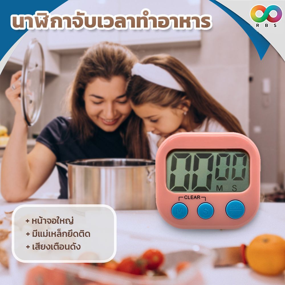 RAINBEAU ฟรี! ถ่าน 🔥 Timer นาฬิกาจับเวลา Digital Kitchen Timer ตั้งเวลาทำอาหาร จอใหญ่พิเศษ เสียงดัง