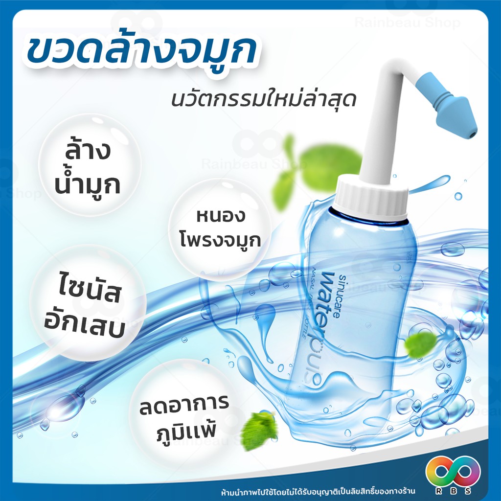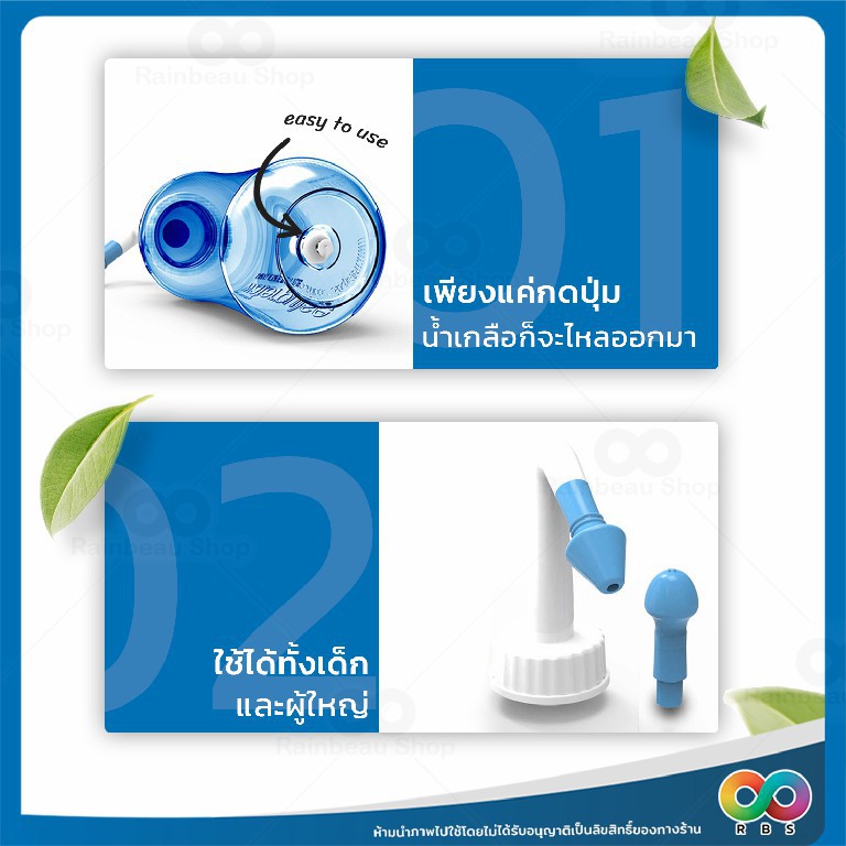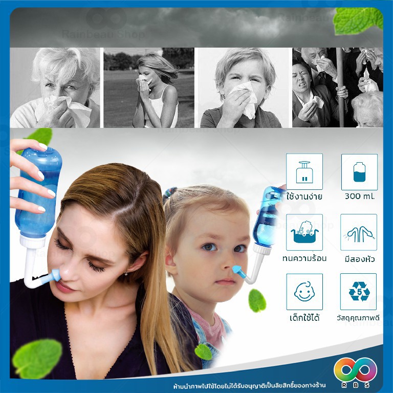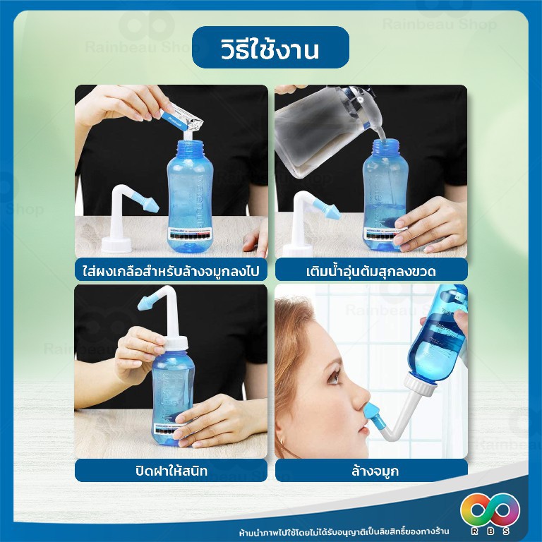 RAINBEAU ที่ล้างจมูก ขวดล้างจมูก พร้อมผงเกลือ มีหัวเปลี่ยน ใช้งานง่าย ใช้ได้ทั้งเด็ก และผู้ใหญ่ (ขนาด 300 ml.)
