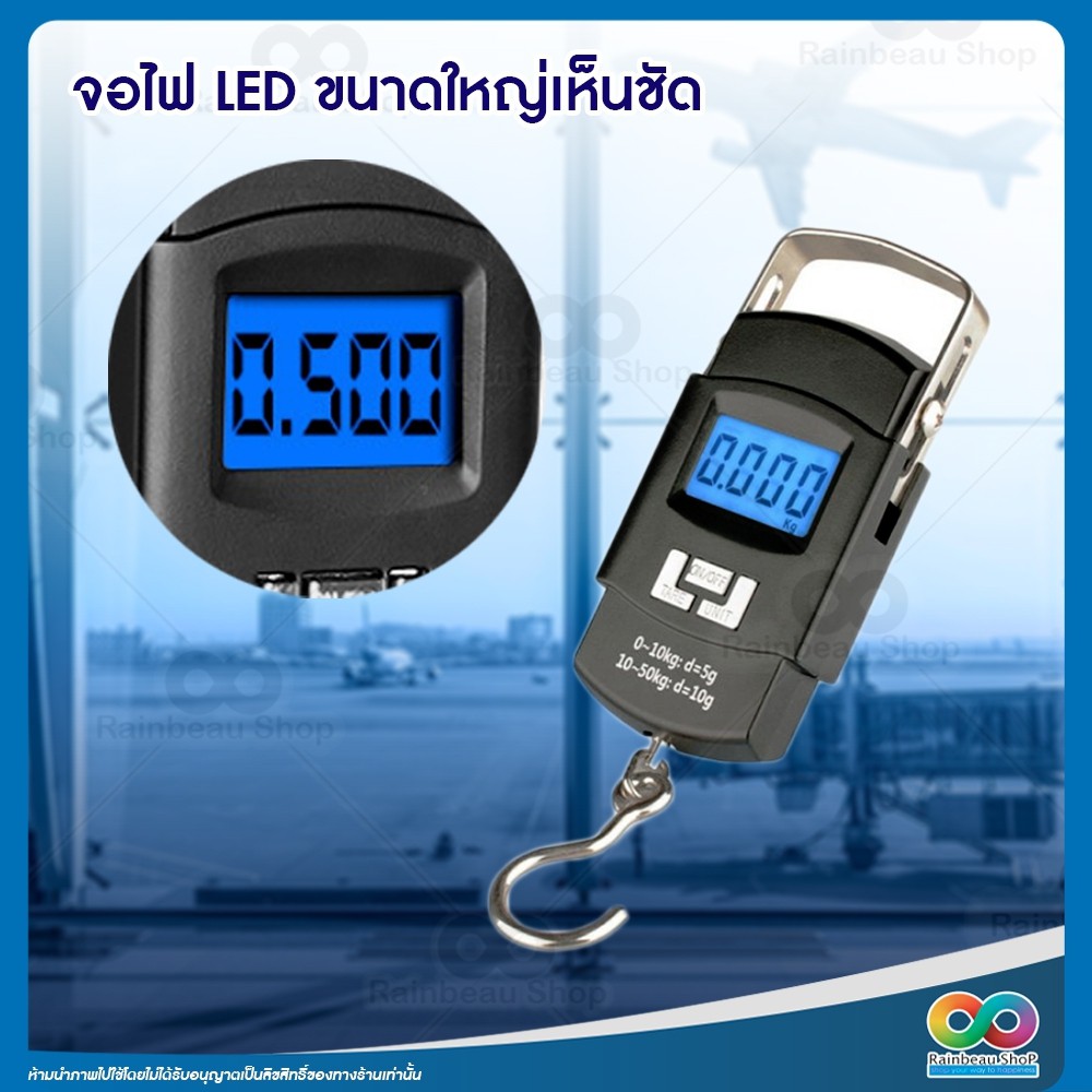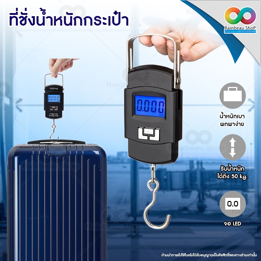 RAINBEAU ที่ชั่งน้ำหนัก ชั่งกระเป๋าเดินทาง PORTABLE ELECTRONIC SCALE 110/lb/50kg capacity LCD Diplay