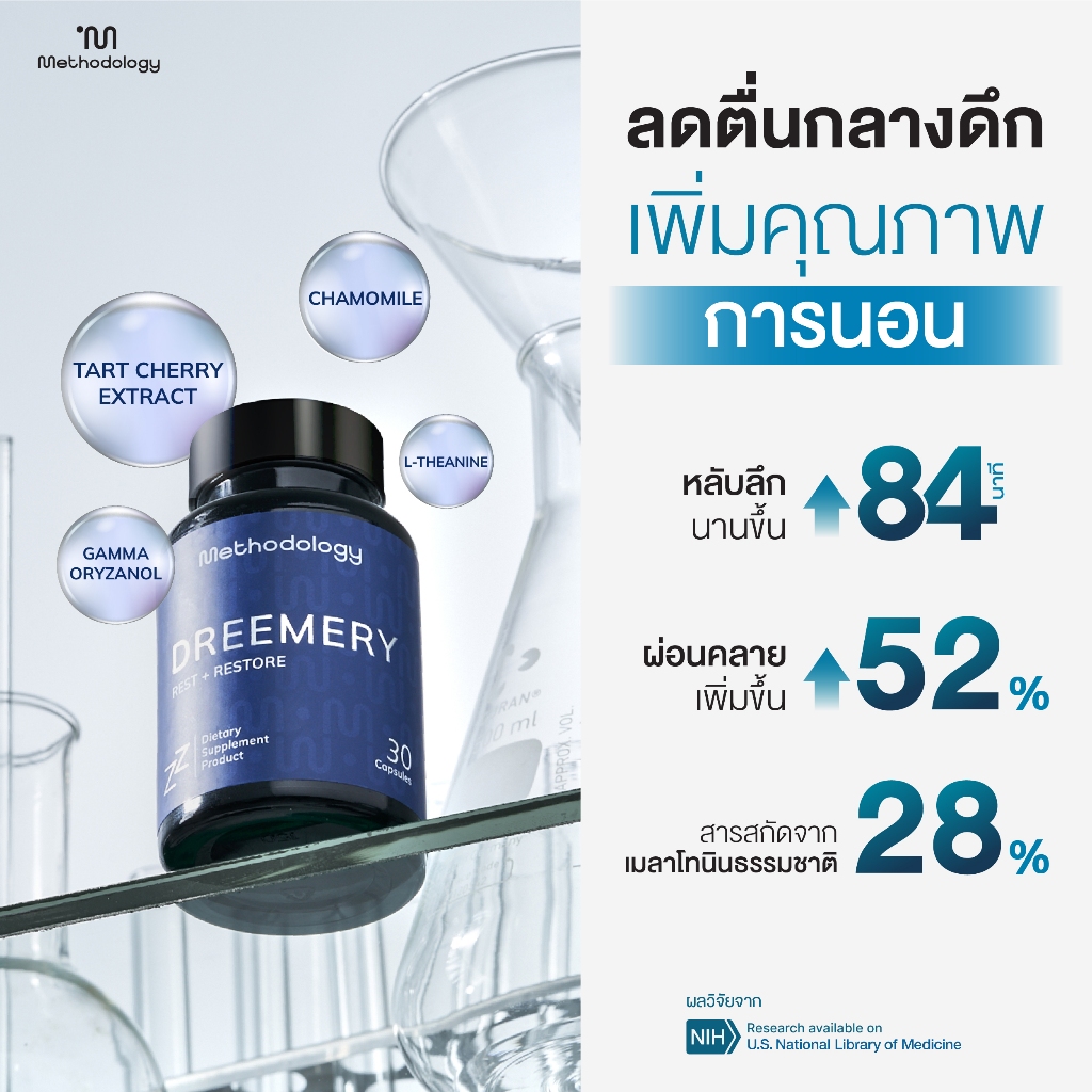 Methodology Dreemery วิตามินช่วยนอนหลับด้วยเมลาโทนินธรรมชาติ ช่วยให้หลับเต็มอิ่มเหมือนปิดสวิตซ์