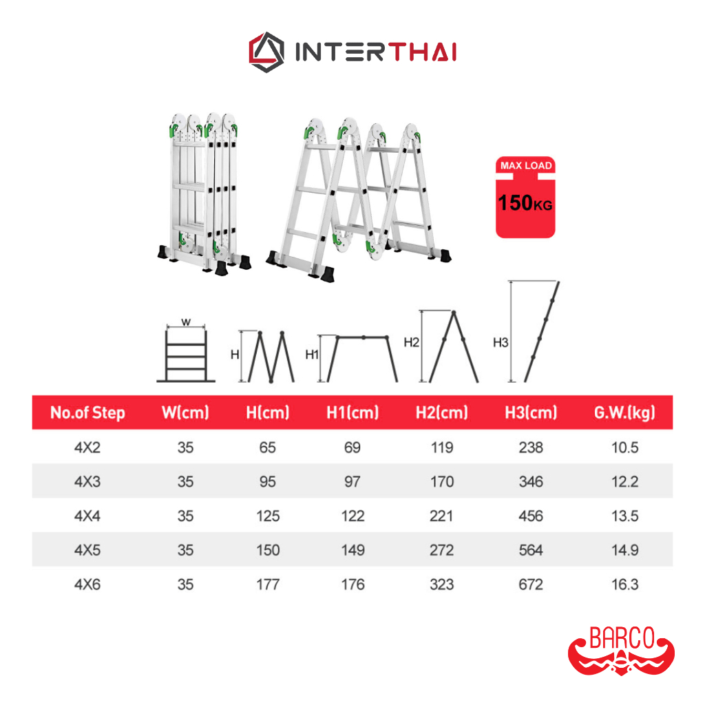 BARCO บันไดอเนกประสงค์อลูมิเนียม รุ่น M2 4x3 12 ขั้น 3.46 เมตร